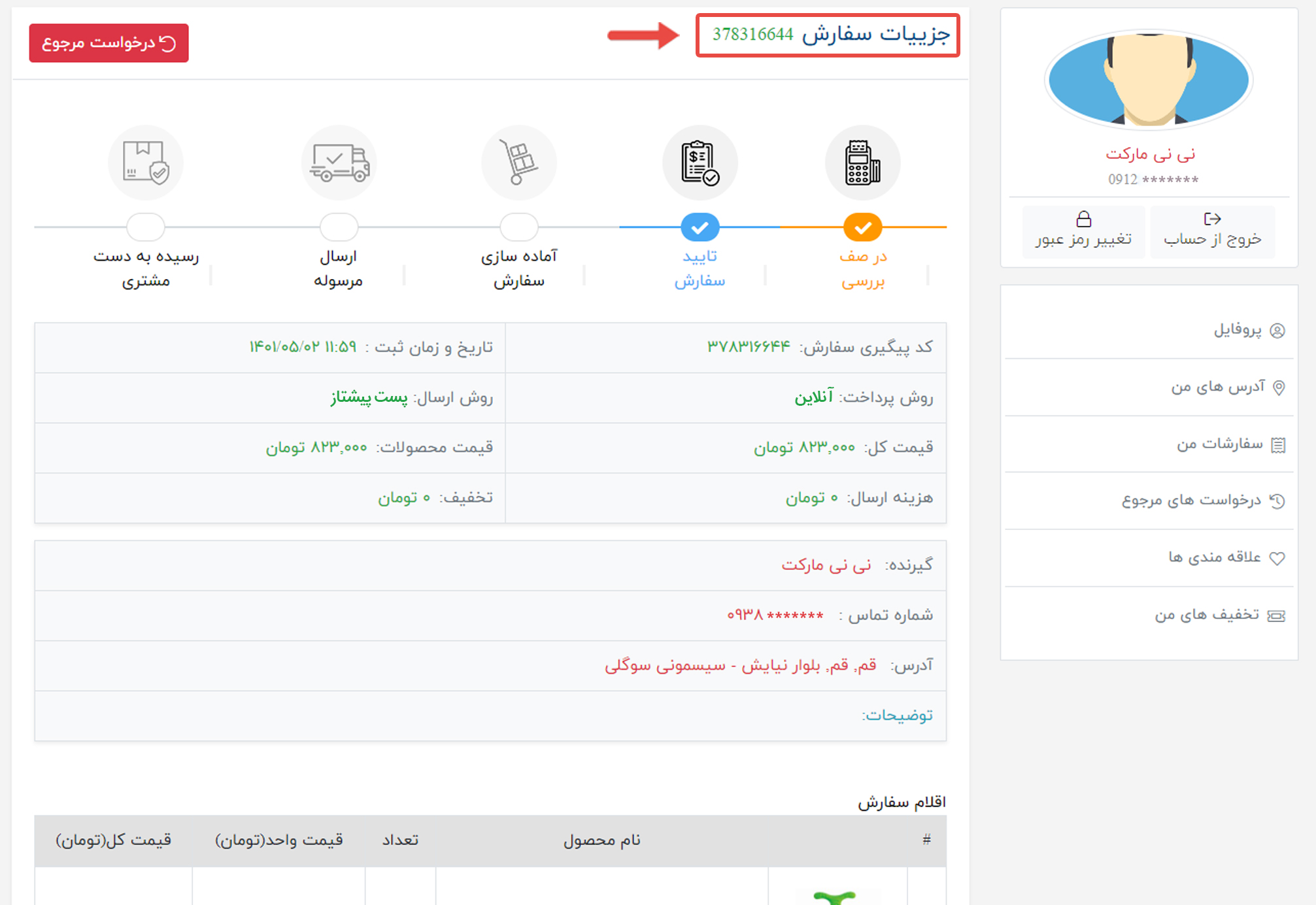 2. در این قسمت با کلیک روی سفارش مدنظر میتوانید جزییات سفارش خود را ببینید.