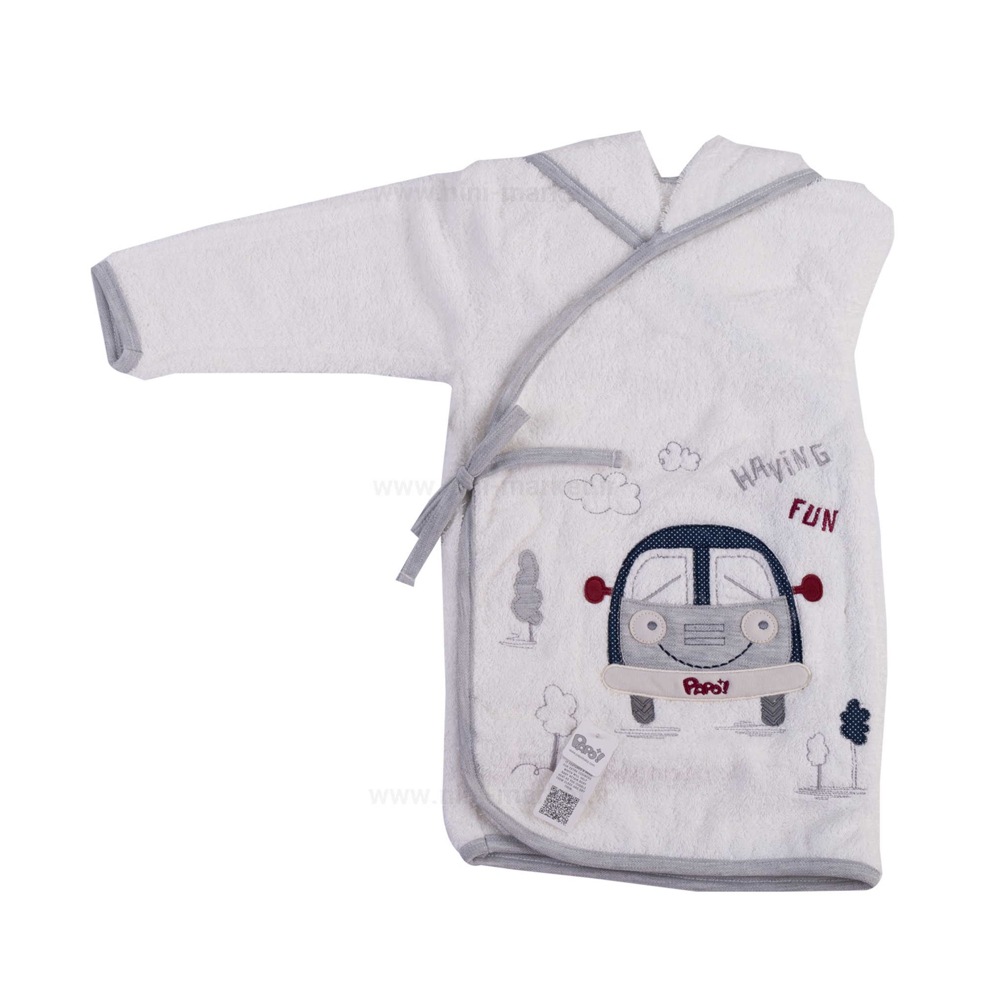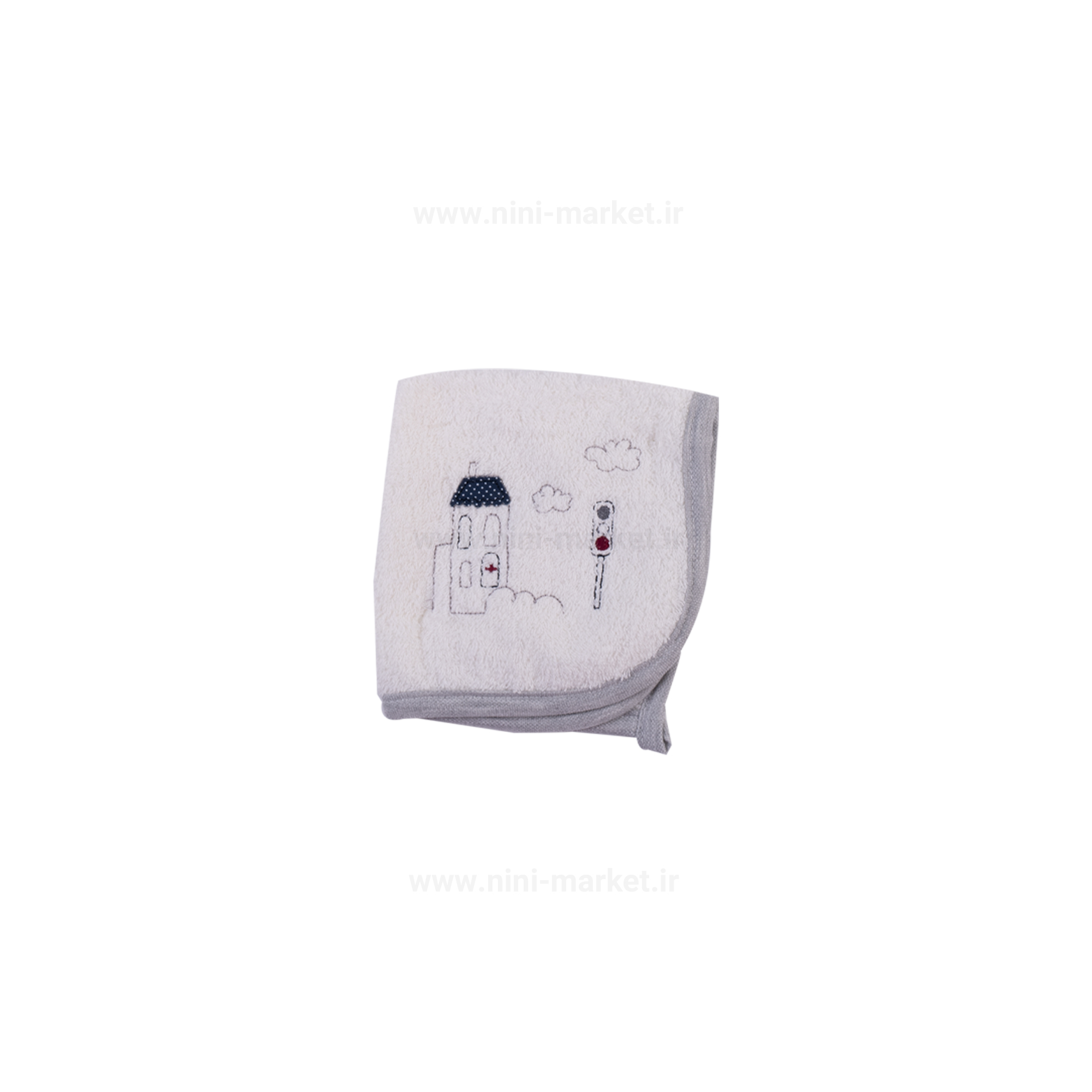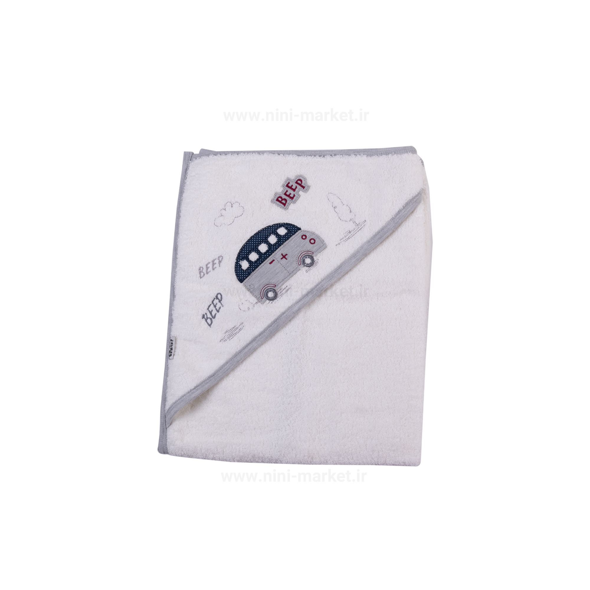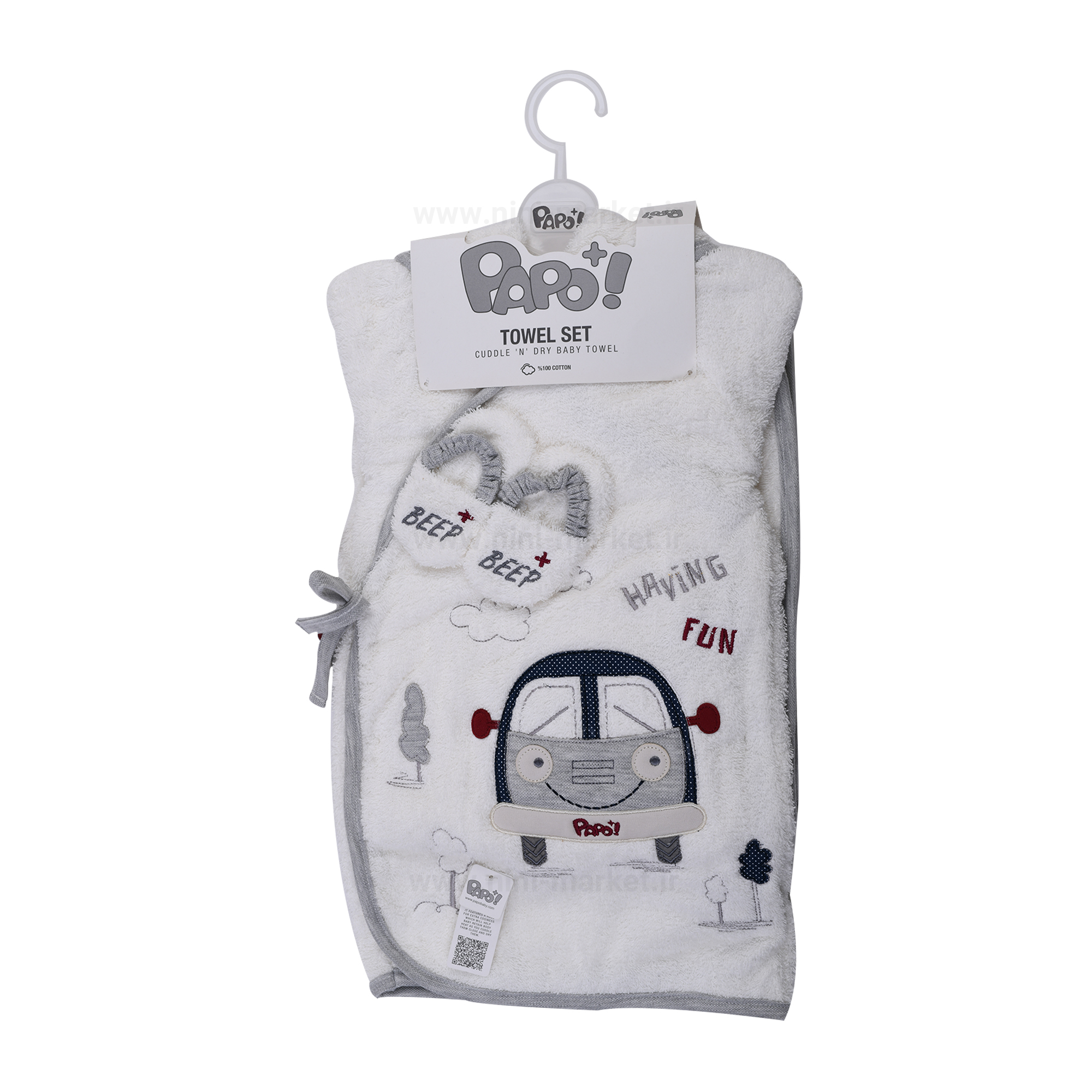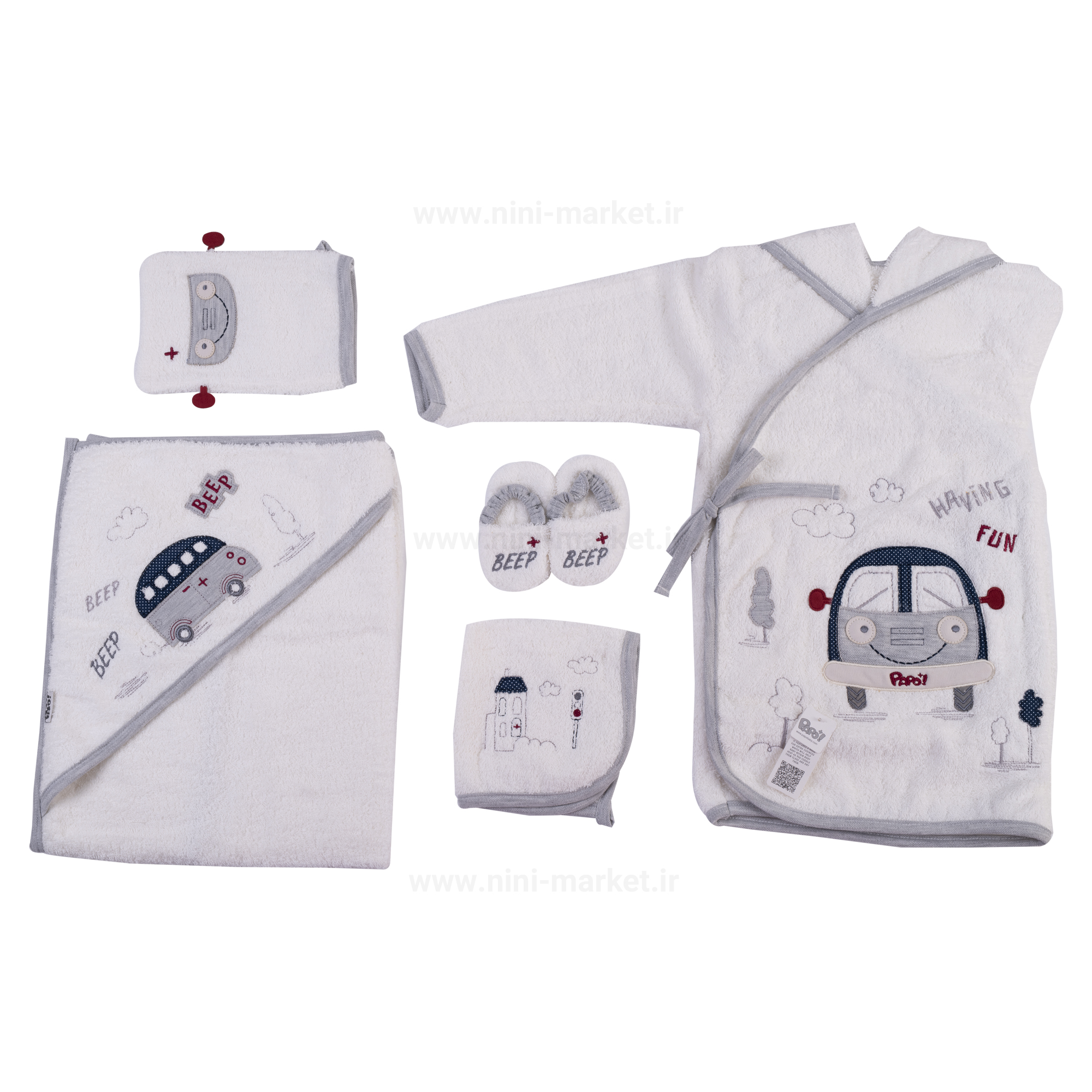 ست حوله 5 تکه طرح ماشین رنگ سفید-طوسی پاپو papo