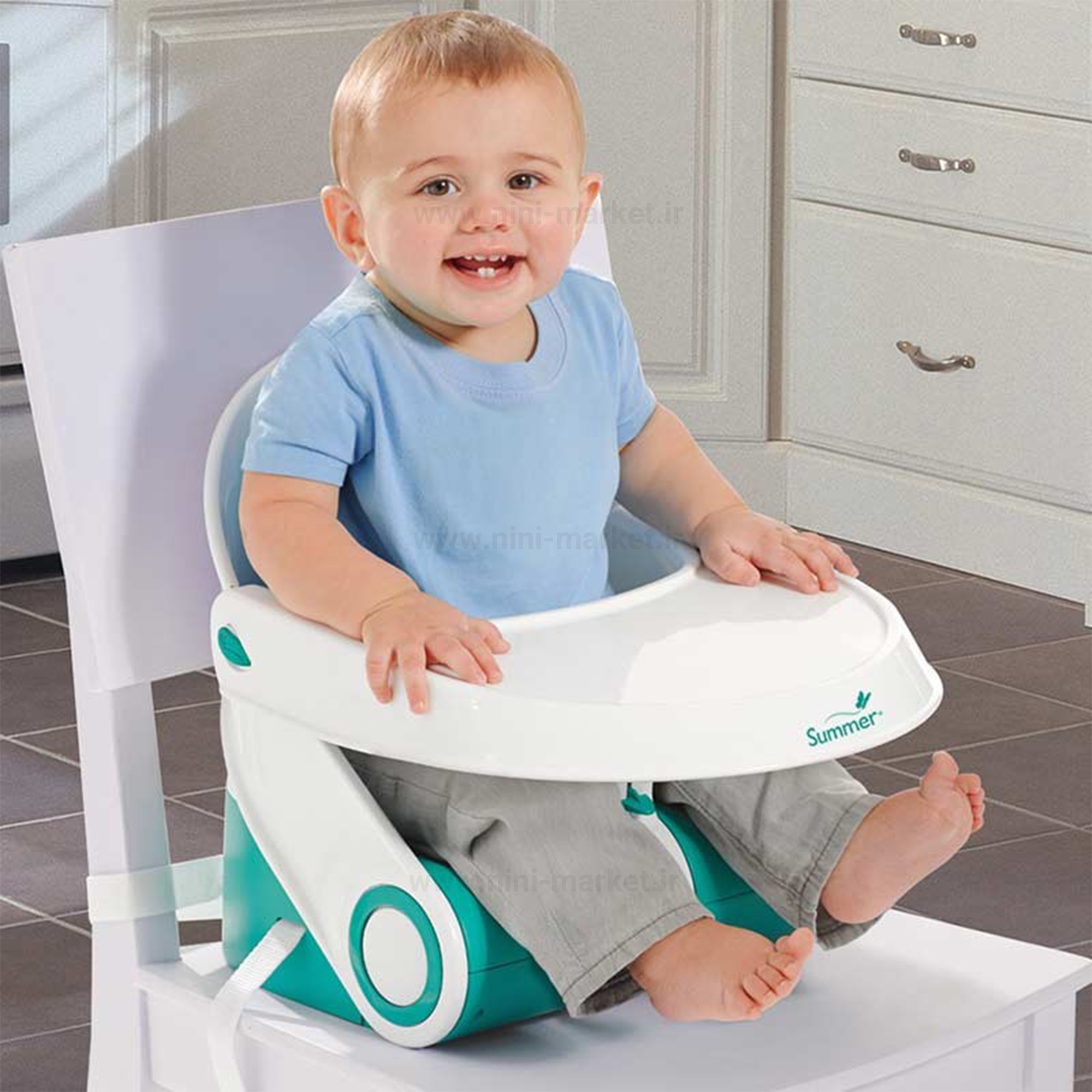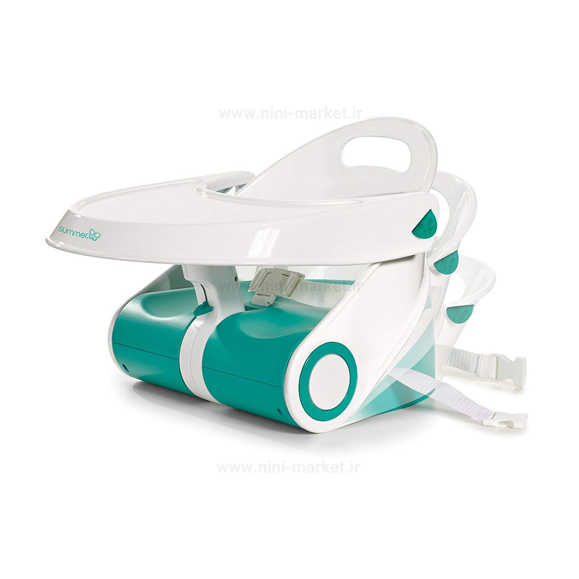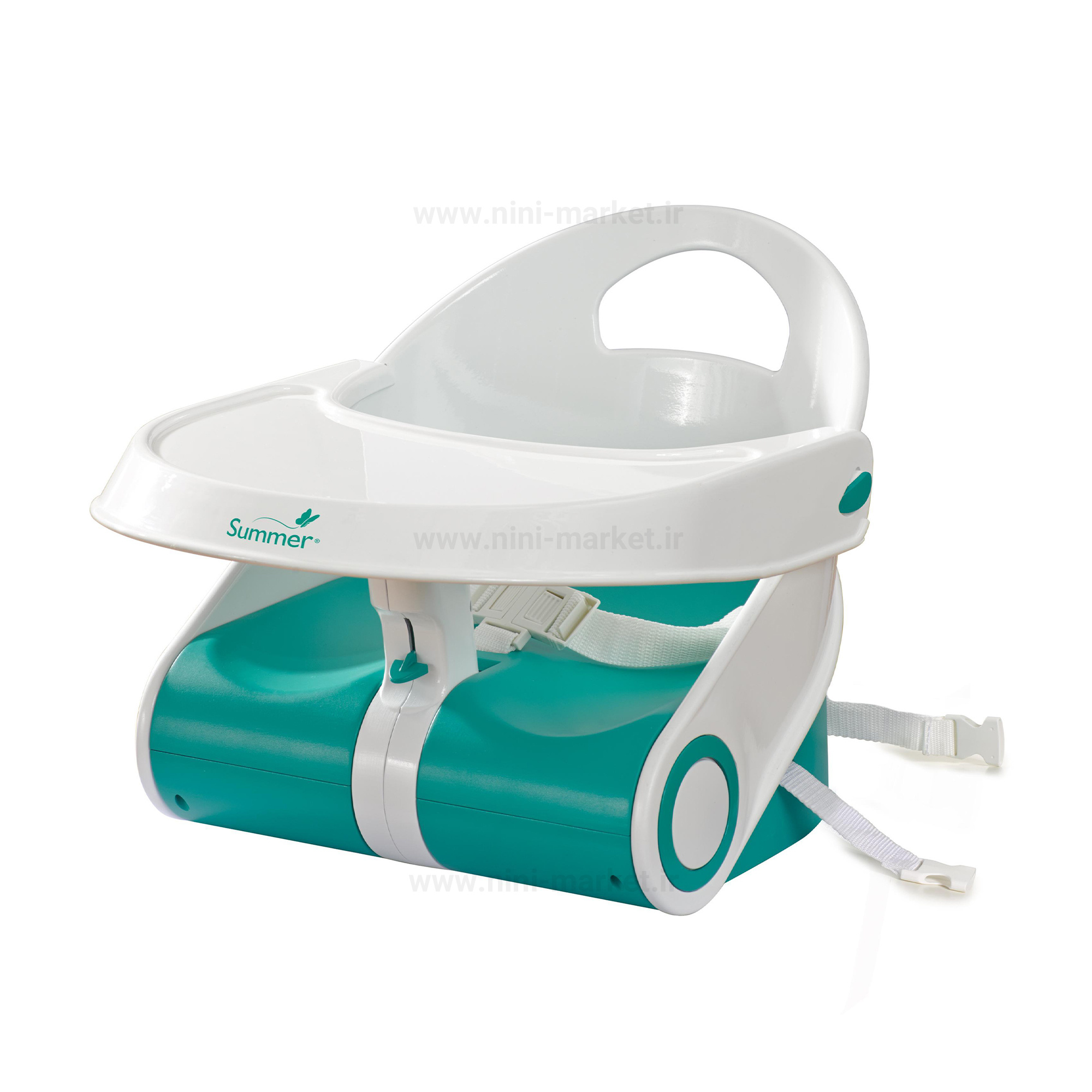 صندلی متصل غذاخوری کودک سامر، یک صندلی مناسب هم برای زمانی که کودک می خواهد به طور مستقل غذا بخورد و چه زمانی که می خواهید او را سر میز غذای بزرگترها بیاورید. بعضی از نوزادان از اینکه در یک جای تکراری و ثابت بنشینند و غذای شان را بخورند فراری هستند و نسبت به این امر واکنش منفی نشان می دهند. آنها دوست دارند به تنهایی غذای شان را بخورند، خود قاشق را به دست بگیرند و از بهم ریختن ظرف غذا و غذا لذت می برند. در این شرایط بهتر است به جای منع کردن کودک تان از چنین رفتاری به دنبال ترغیب وی در جهت غذا خوردن باشید. اگر یک محل شادی آفرین و رنگارنگ نظیر صندلی سامر را انتخاب کنید می تواند در جذب و ایجاد علاقمندی در کودک شما موثر واقع شود. صندلی غذای کودک سامر قابل نصب روی هر صندلی است و به راحتی جمع میشوند. فضای خیلی کمی را اشغال میکند و مناسب برای حمل در مسافرت نیز است. سینی این صندلی قابلیت جدا شدن و شستشو در ماشین ظرفشویی را دارد. دارای کمربند ایمنی با اتصال به سه نقطه جهت جلوگیری از سقوط کودک است. به آسانی و به واسطه کمربند های کناری و پشتی به صندلی چوبی متصل می شود. این صندلی به راحتی جمع می شود، کافی است که دو دایره ی رنگی کنار صندلی را فشار دهید و صندلی را جمع کنید. در نظر داشته باشید که برای حفظ ایمنی کودک، از اتصال این صندلی به صندلیهای پلاستیکی و سبک خودداری کنید. وزن قابل تحمل این صندلی غذا 15کیلوگرم می باشد.