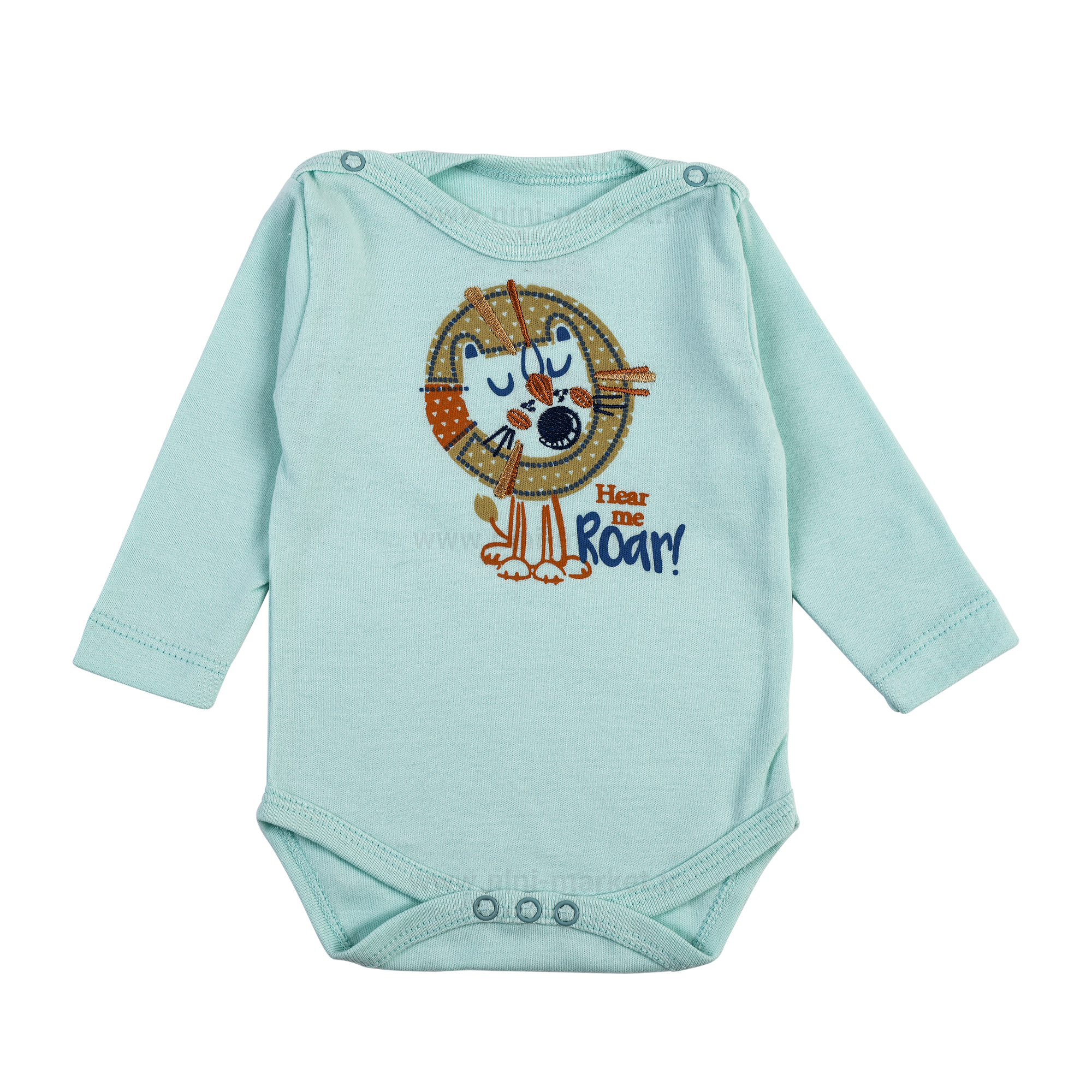 طرح روی زیر دکمه آستین بلند طرح جانگل برند پولونیکس یک شیر که به صورت گلدوزی و چاپ شده است. در هر طرف سرشانه بادی آستین بلند دو دکمه برای راحت تر پوشاندن لباس وجود دارد و در قسمت پایین آن نیز سه دکمه راحت راحت تر تعویض کردن پوشک کودک وجود دارد. جنس آن نرم، لطیف، نخی و ضد حساسیت می باشد و به پوست کودک صدمه و آسیبی وارد نمی کند.
