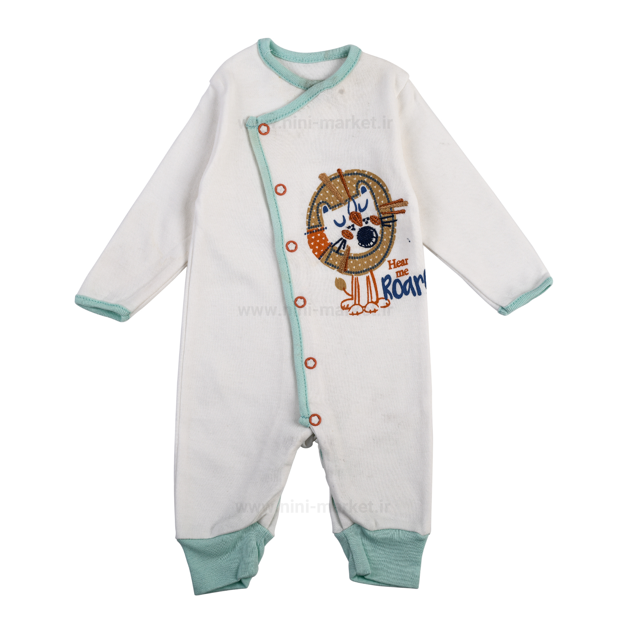 سرهمی بدون جوراب طرح جانگل برند پولونیکس رنگ زمینه سفید دارد. طرح آن طرح شیر که به صورت گلدوزی وچاپ شده است. لبه ی آستین و مچ پا و یقه ی آن آبی رنگ است. فرم لباس حالت آزادی دارد و کودکان شما احساس راحتی در آن دارند. مناسب برای روزمره و مهمانی است. در ناحیه جلو سرهمی پنج دکمه وجود دارد برای راحت تر پوشاندن سرهمی. جنس آن نرم، لطیف، نخی و ضد حساسیت می باشد و به پوست کودک صدمه و آسیبی وارد نمی کند.