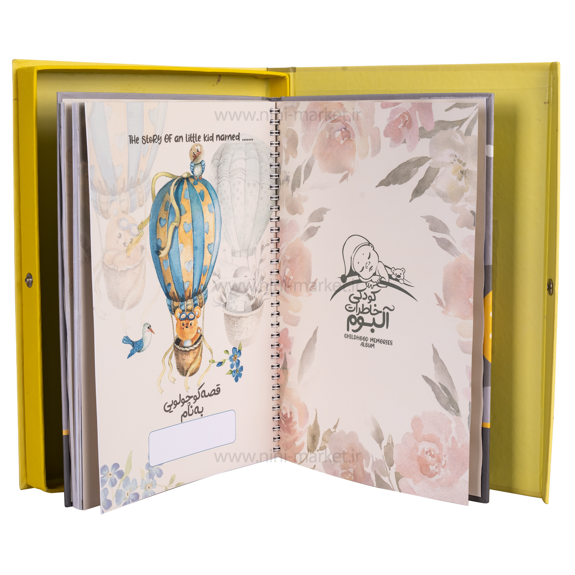 مشخصه و جزئیات ظاهری آلبوم رنگی کودک میتوان به این موارد اشاره کرد : تعداد برگ : 40 - تعداد عکس قابل استفاده: 42 - نوع صحافی : سیمی فرم صحافی : عمودی - نوع جلد : سخت -ضخامت آلبوم : 5/1 سانتی متر می باشد . آلبوم خاطرات کودکی شامل 90 صفحه از جنس کاغذ کارتی 160 گرم و چاپ 4 رنگ با طراحی منحصر به فرد می باشد که دارای فضاهای مناسب برای نوشتن خاطرات و همچنین عکس های دوران بارداری مادر تا هفت سالگی فرزندانتان می باشد. جلد البوم مدل جلد سخت همراه با ابر می باشد که ظرافت و لطافت خاصی به البوم داده است.همچنین بر روی جلد بهترین تکنیک های چاپ از جمله یووی برجسته و سلفون مات استفاده شده است. این آلبوم دارای یک جعبه بسیار لوکس و نفیس دکمه دار می باشد.جنس جعبه جلد سخت می باشد و بر روی آن تکنیک یووی برجسته استفاده شده است. همچنین بر روی جعبه یک برش به همراه یک کاور عکس برای قرار دادن عکس نوزادتان تعبیه شده است.
