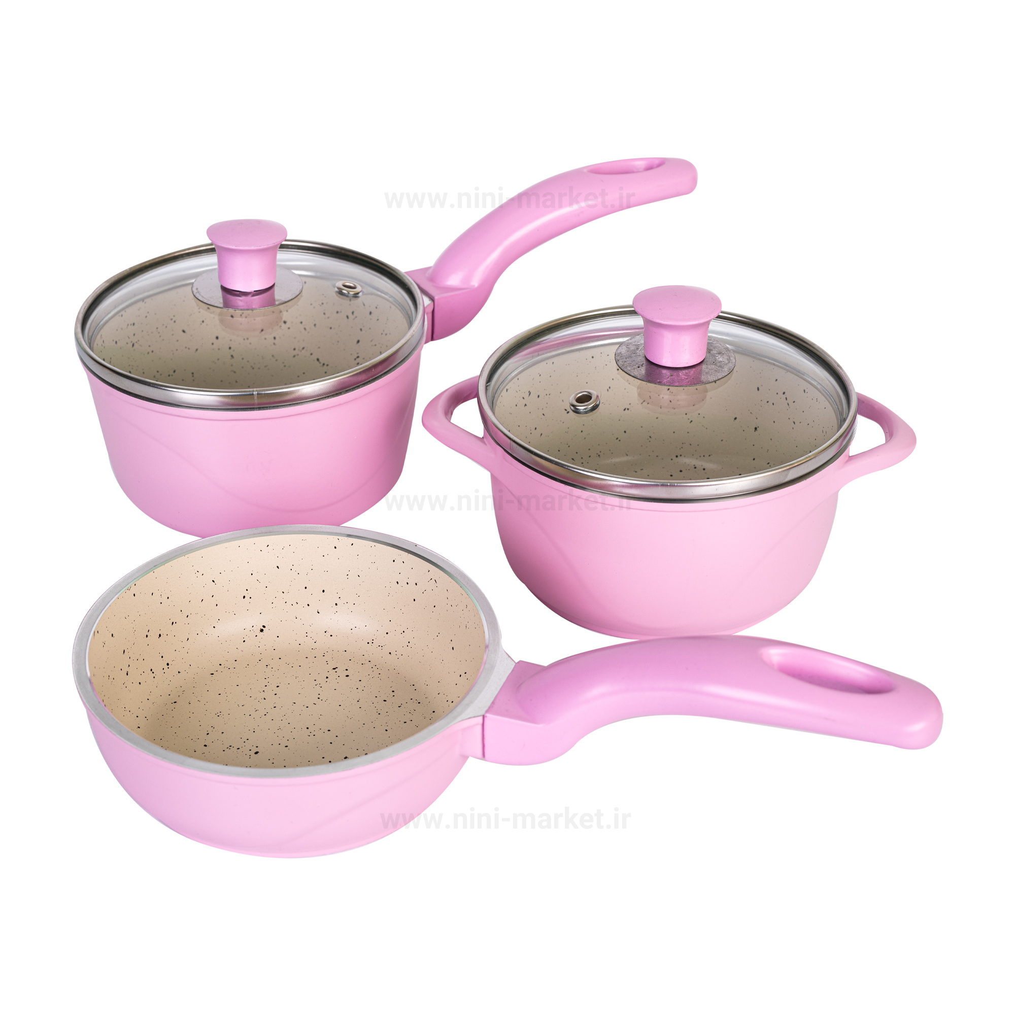 سرویس قابلمه 5 تکه مدل ویکتوریا رنگ صورتی عروس Aroos