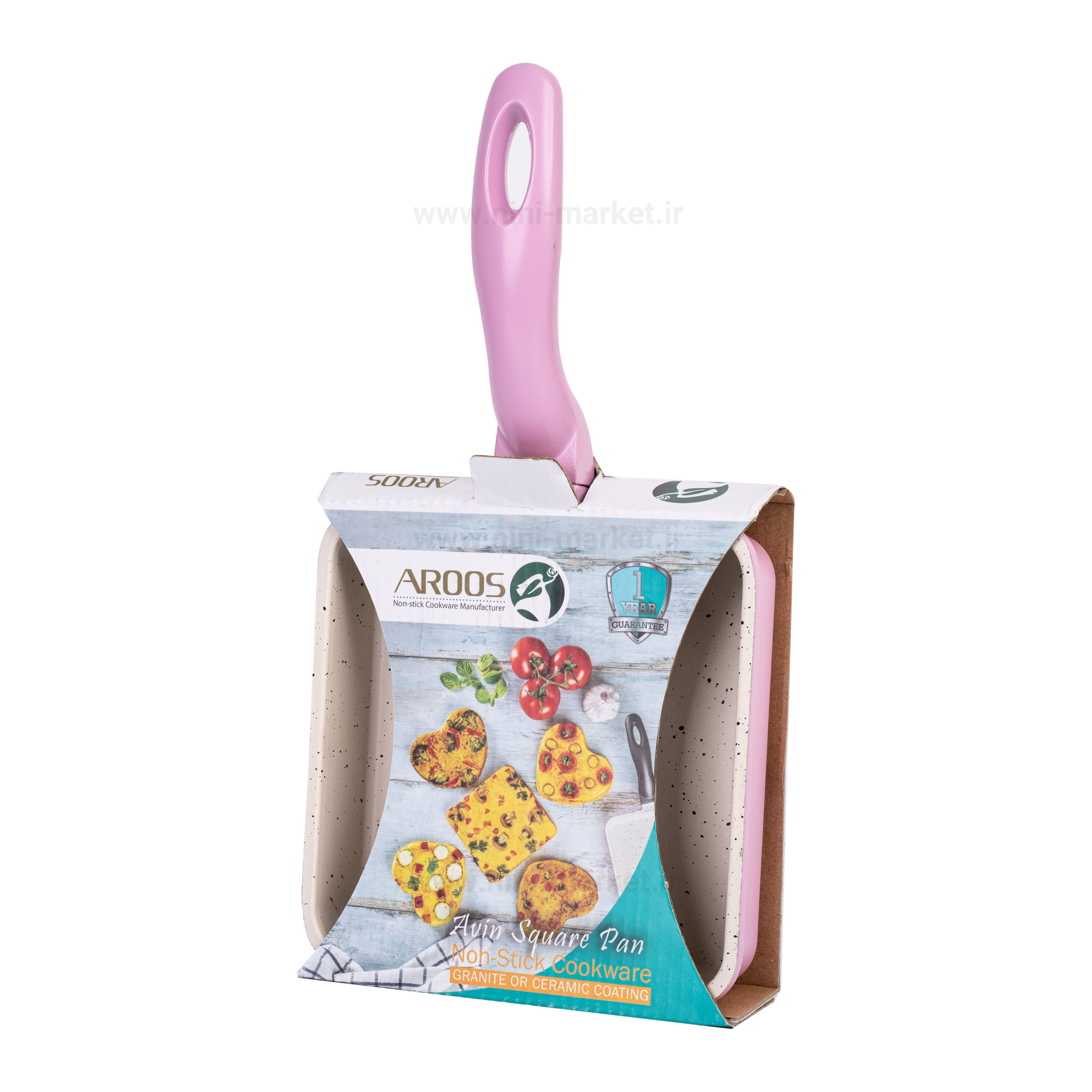 تابه چدن گرانیت مربع رنگ صورتی عروس Aroos