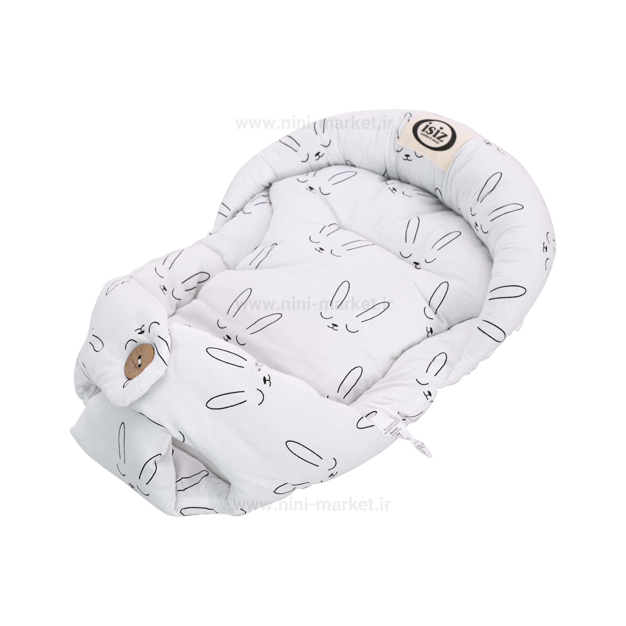 قنداق سوئیسی ISIZ ، تشک لبه دار که جنس آن پارچه ای-نخی با طرح خرگوش است و برای کودکان کاملا آرامش بخش می باشد. این تشک های لبه دار به قنداق مدل سوئیسی نیز معروف می باشند و می تواند خوابی آرام و راحت برای نوزاد عزیزتان به همراه داشته باشد. استفاده از این قنداق سوئیسی بسیار ساده و راحت است و به دلیل شیبی که دارد نوزاد به راحتی درون آن قرار گرفته و آرامش خواهد داشت. این تشک ها به دلیل گارد و لبه ای که دارد ایمن است و می تواند خیال والدین را از گذاشتن دلبند خود درون آن راحت نماید و به کمک آن می توانند دلبند خود را راحت تر در آغوش بگیرند. کابرد این قنداق های سوئیسی زمانی بیشتر خود را نشان می دهد که نوزاد دلبندتان خواهر یا برادر بزرگتری داشته باشد که مدام او را در آغوش می گیرد و یا مهمانانی دارید که دائما در حال در بغل کردن دلبند شما هستند، با خرید این کالا شما می توانید فرزندتان را درون قنداق سوئیسی گذاشته و به این ترتیب او را در آغوش دیگران بگذارید بدون اینکه از بابت مریض شدن و یا تماس دیگران با پوست دلبندان نگرانی به خود راه دهید. ضمنا لبه پایینی تشک با دکمه باز می گردد و می توانید از آن طریق بدون آنکه موجب آزار دلبندتان شوید پوشک فرزندتان را تعویض نمایید.