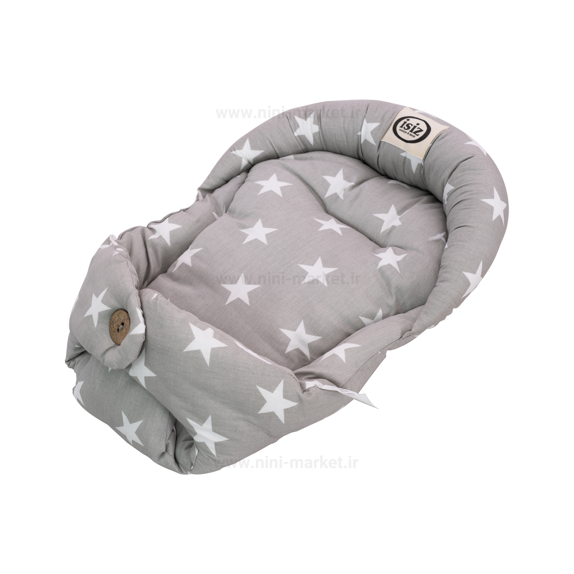قنداق سوئیسی ISIZ ، تشک لبه دار که جنس آن 100% کتان نخ با طرح ستاره است و برای کودکان کاملا آرامش بخش می باشد. این تشک های لبه دار به قنداق مدل سوئیسی نیز معروف می باشند و می تواند خوابی آرام و راحت برای نوزاد عزیزتان به همراه داشته باشد. استفاده از این قنداق سوئیسی بسیار ساده و راحت است و به دلیل شیبی که دارد نوزاد به راحتی درون آن قرار گرفته و آرامش خواهد داشت. این تشک ها به دلیل گارد و لبه ای که دارد ایمن است و می تواند خیال والدین را از گذاشتن دلبند خود درون آن راحت نماید و به کمک آن می توانند دلبند خود را راحت تر در آغوش بگیرند. کابرد این قنداق های سوئیسی زمانی بیشتر خود را نشان می دهد که نوزاد دلبندتان خواهر یا برادر بزرگتری داشته باشد که مدام او را در آغوش می گیرد و یا مهمانانی دارید که دائما در حال در بغل کردن دلبند شما هستند، با خرید این کالا شما می توانید فرزندتان را درون قنداق سوئیسی گذاشته و به این ترتیب او را در آغوش دیگران بگذارید بدون اینکه از بابت مریض شدن و یا تماس دیگران با پوست دلبندان نگرانی به خود راه دهید. ضمنا لبه پایینی تشک با دکمه باز می گردد و می توانید از آن طریق بدون آنکه موجب آزار دلبندتان شوید پوشک فرزندتان را تعویض نمایید.