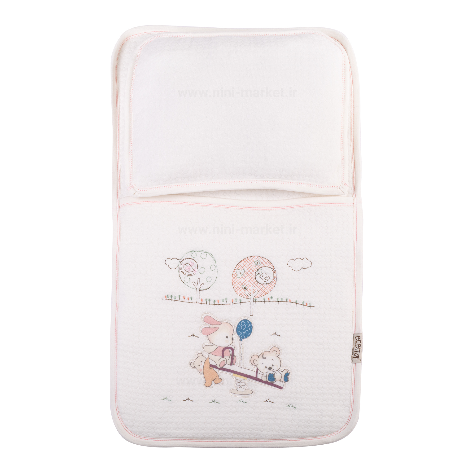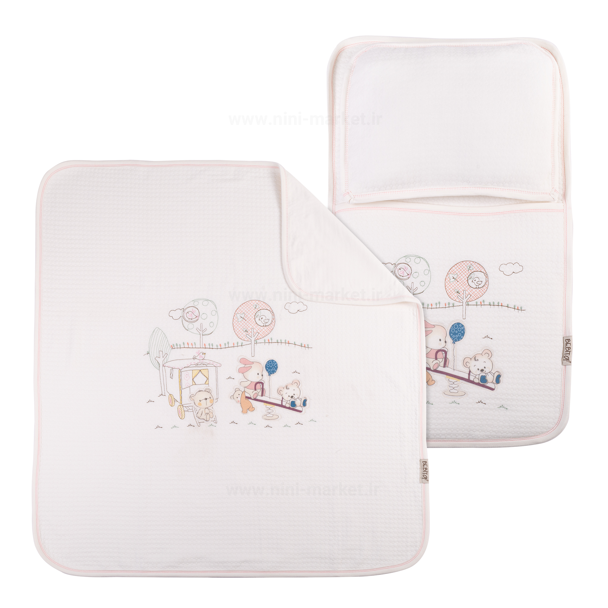 این ست سه تکه دارای یک تشک - بالشت و پتوی نوزادی است. جنس رویه از کتان ژاکارد نرم و بسیار با کیفیت می باشد . تشک این را می توان به عنوان قنداق و کیسه خواب مورد استفاده قرار داد. یکی از ویژگی های این محصول سه تکه این است که بالش و پتو را می توانید داخل تشک جا داد با این کار فضای کمتری برای حمل این سه تکه اشغال می شود. دارای یک کاور زیپ دار به منظور پیشگیری از آلودگی سه تکه در هنگام حمل و نقل است. این کاور به شما این امکان را می دهد تا به سادگی این رختخواب را همراه خود بیرون از منزل، به گردش یا مسافرت ببرید. طرح کلی این کالا خرس و درخت که به صورت تکه دوزی و گل دوزی در آمده است .