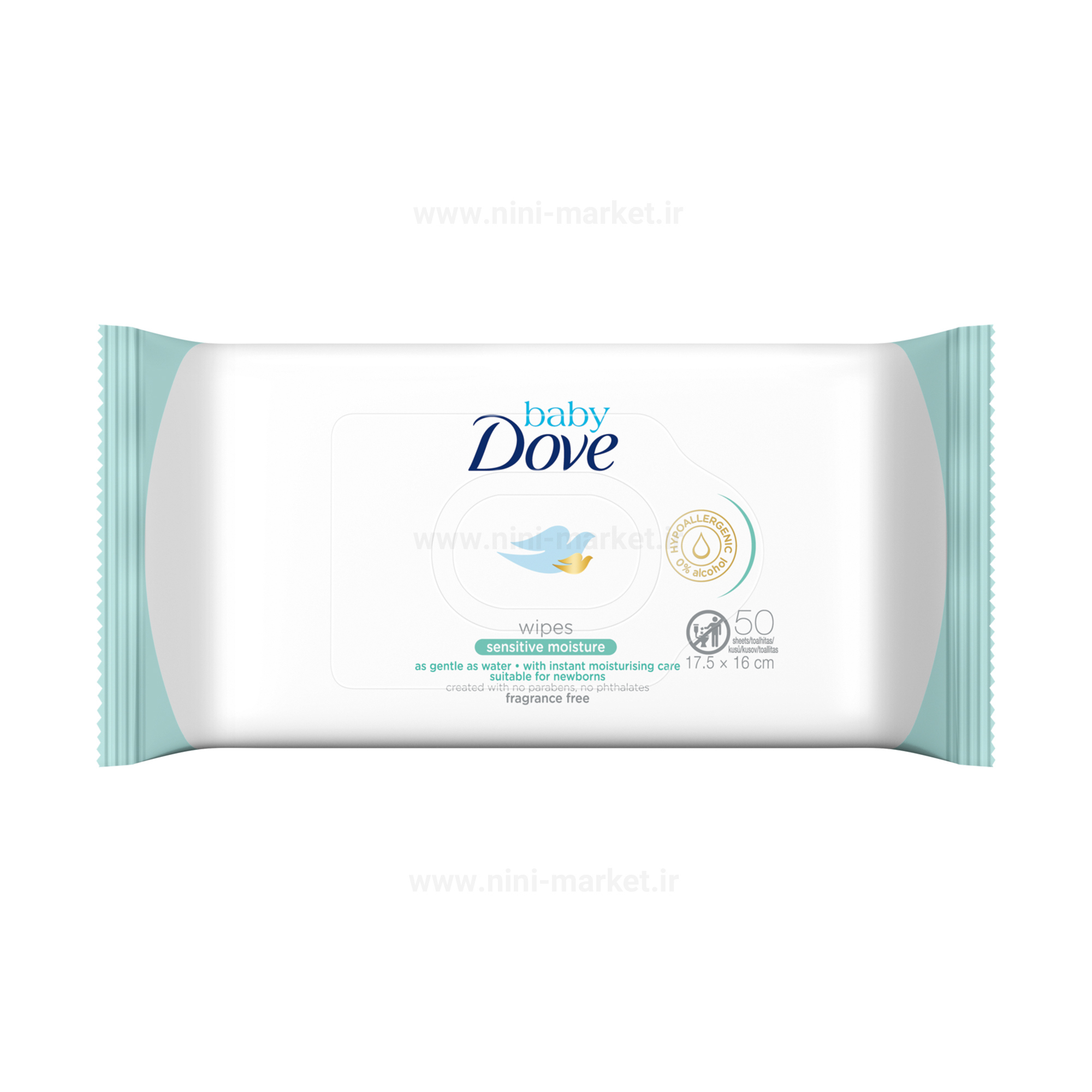 دستمال مرطوب کودک داو Dove مدل sensitive moisture بسته 50 عددی