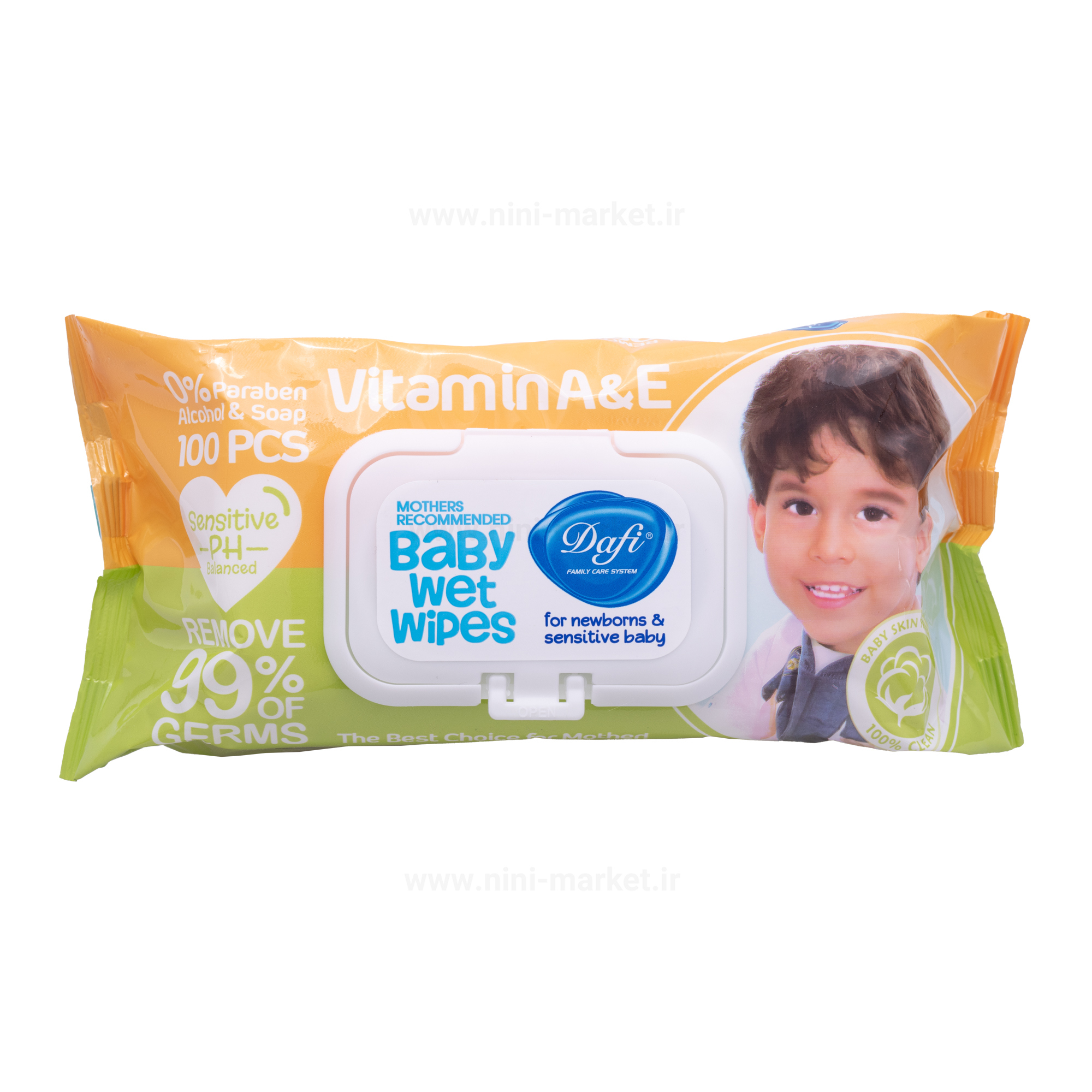 دستمال مرطوب کودک دافی Dafi مدل SENSETIVE بسته 100 عددی
