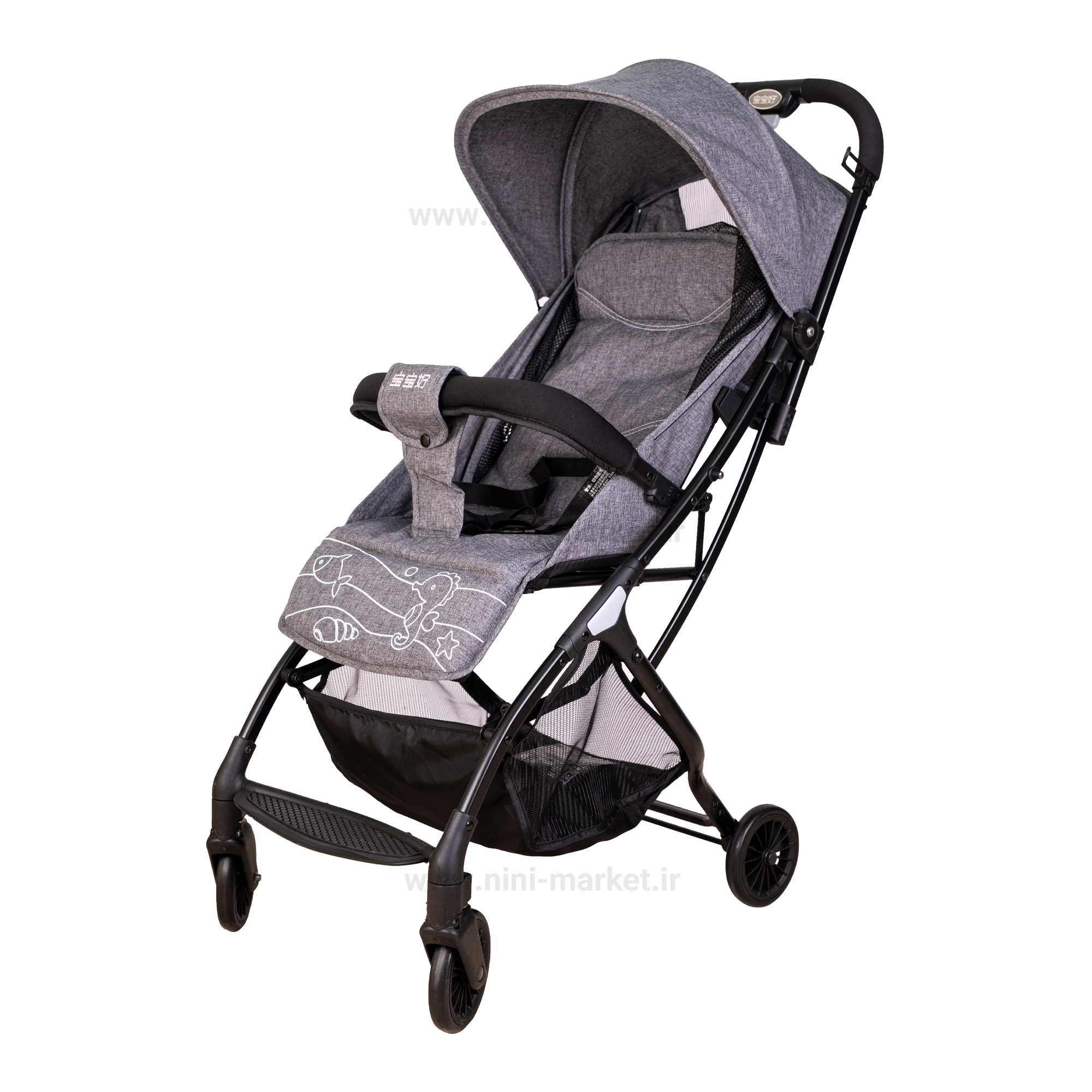 کالسکه تک تاشو چمدانی S1 طوسی بائوبائوهائو Baobaohao