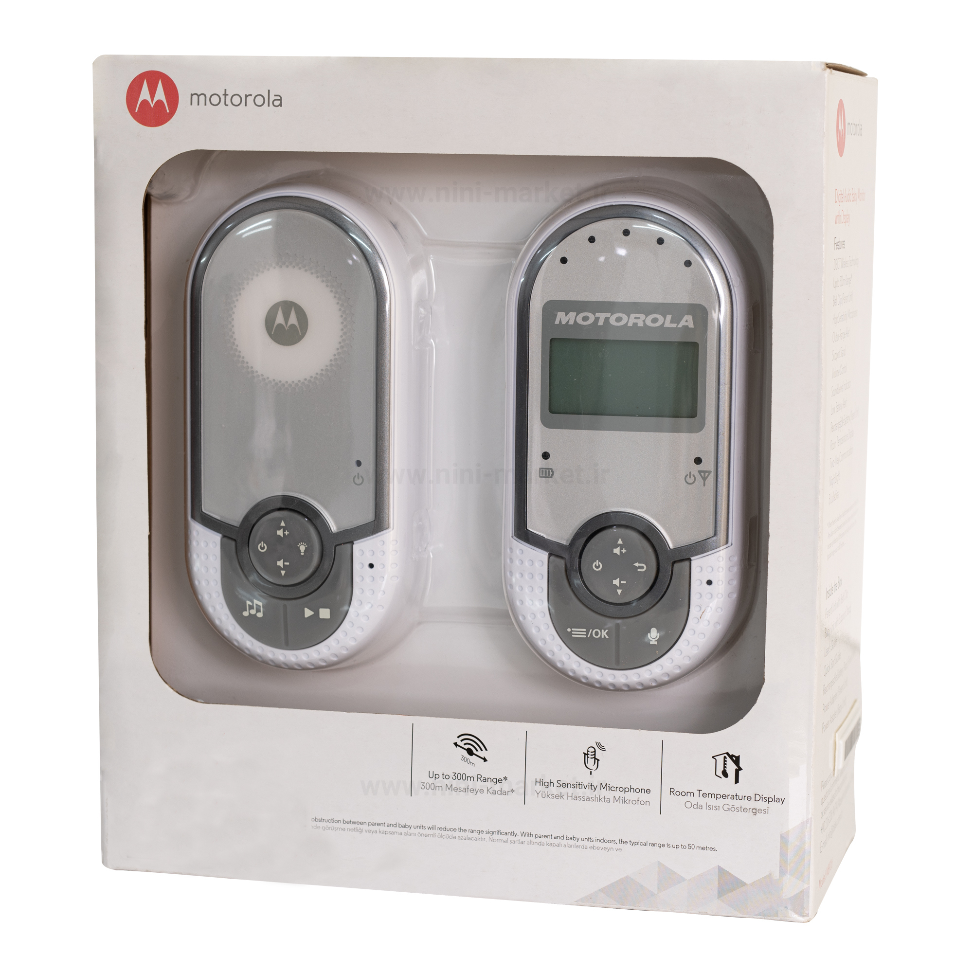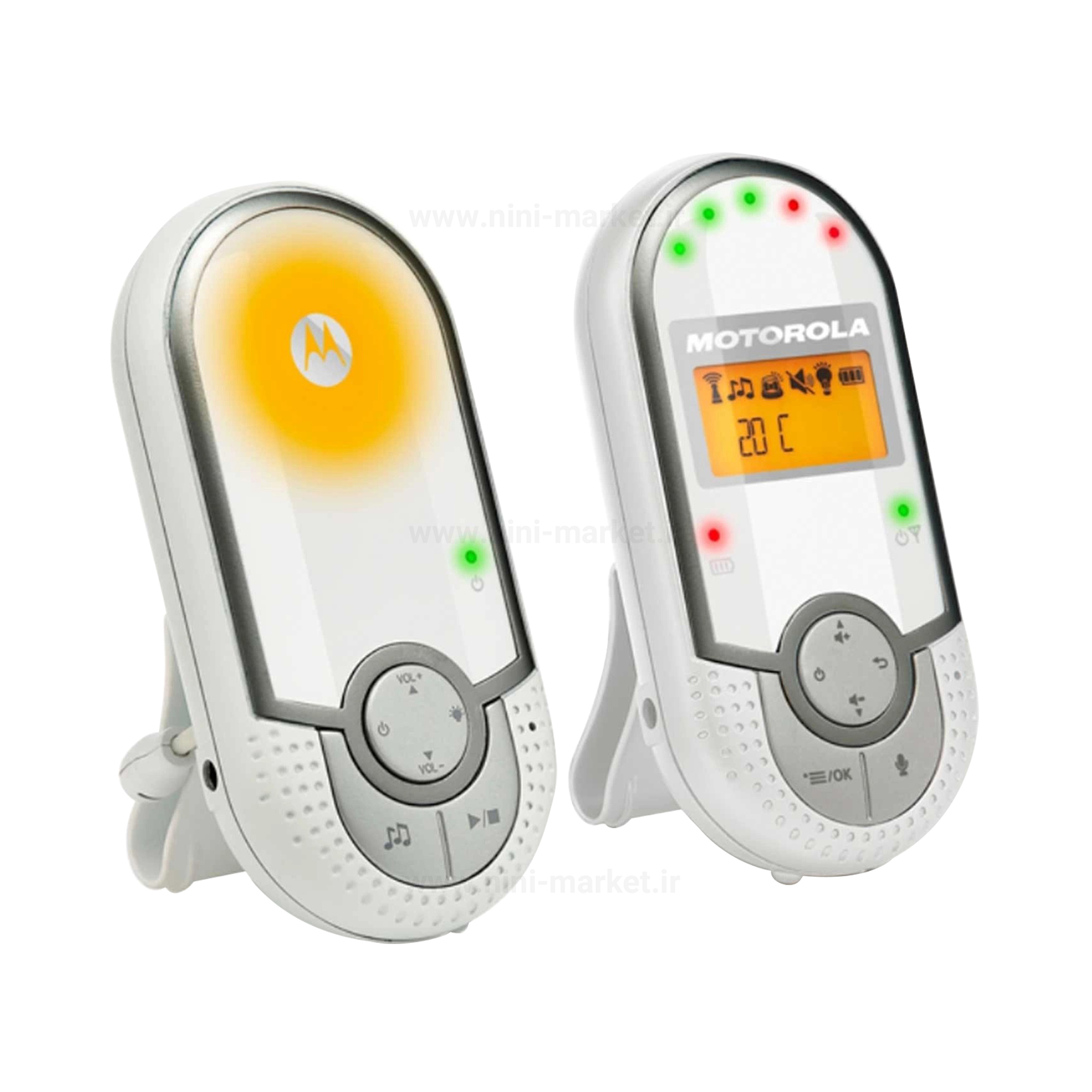 MBP16 عملکردهای متنوعی را ارائه می دهد و استفاده از آن آسان است. چراغ شب را روشن کنید تا اتاق کمی روشن شود و شب آنقدر تاریک نباشد. به لطف MBP16 موتورولا ، مطمئناً هر صدایی را می شنوید. دماسنج برای تشخیص دمای محیط مانیتور کودک دارای سنسور دما است که به شما اجازه می دهد بدانید دمای اتاق نوزاد چقدر است. همیشه مانیتور کودک را همراه خود داشته باشید و با گیره کمربند دستان خود را آزاد نگه دارید. حالت Eco یک فناوری است که باعث کاهش مصرف برق و انتقال قدرت برای دستگاه های DECT می شود. محدودیت های بین المللی برای انتقال امواج رادیویی اطمینان می دهد که هیچ خطری وجود ندارد. محصولات ما بسیار کمتر از محدوده توصیه شده است. اگرچه هنوز هیچ شواهد علمی مبنی بر مضر بودن امواج رادیویی منتشر شده توسط دستگاه های DECT وجود ندارد ، اما مانیتورهای کودک ما عملکردی دارند که به طور خودکار قدرت انتقال را کاهش می دهد. دارای نشانگر بصری سطح صوتی دارای چراغ شب در قسمت نوزاد.