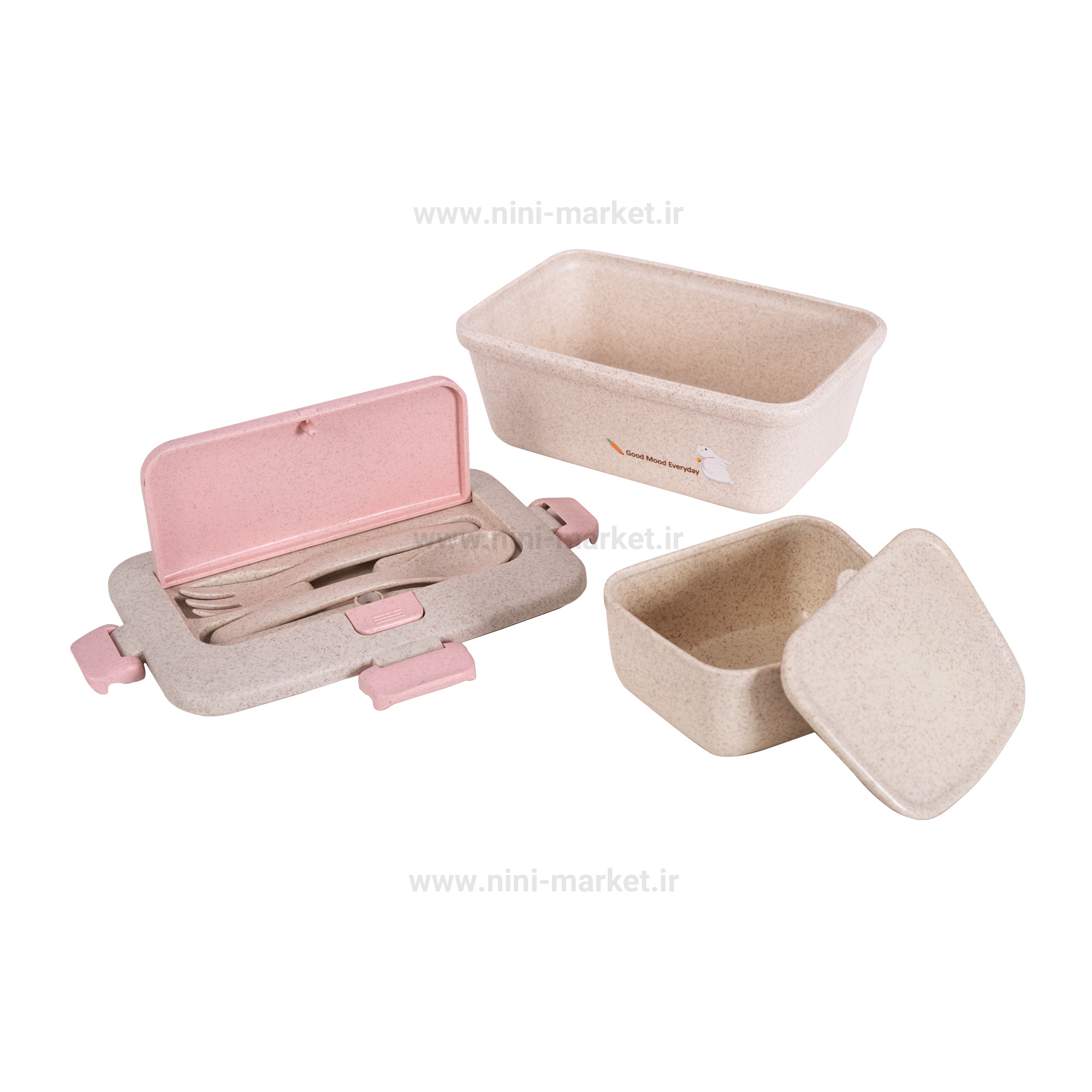 در درب این ظرف غذا یک محفظه ای قرار دارد که قاشق و چنگال درون آن مخفی می شود و نیازی نیست که قاشق و چنگال اضافه نیست که به همراه خود داشته باشید. یک ظرف کوچک درب دار نیز داخل ظرف غذا وجود دارد که میتوان همزمان دو نوع یک مواد غذایی داشت این ظرف قابلیت استفاده در ماکروویو (برای قرار دادن در ماکروویو بدون درب استفاده شود) داراست و به راحتی بدون آن که استرس غذا را گرم کنید. و حتی مناسب برای نگهداری غذا در یخچال و فریزر را نیز دارد. یک محصول دارای درب محکم بدون نفوذ است و که با خیال راحت هنگام بیرون رفتن آن را در کیف قرار دهید. حداکثر دمای برای سرمایش -20 درجه سانتیگراد و گرمایش 120 درجه سانتیگراد است .