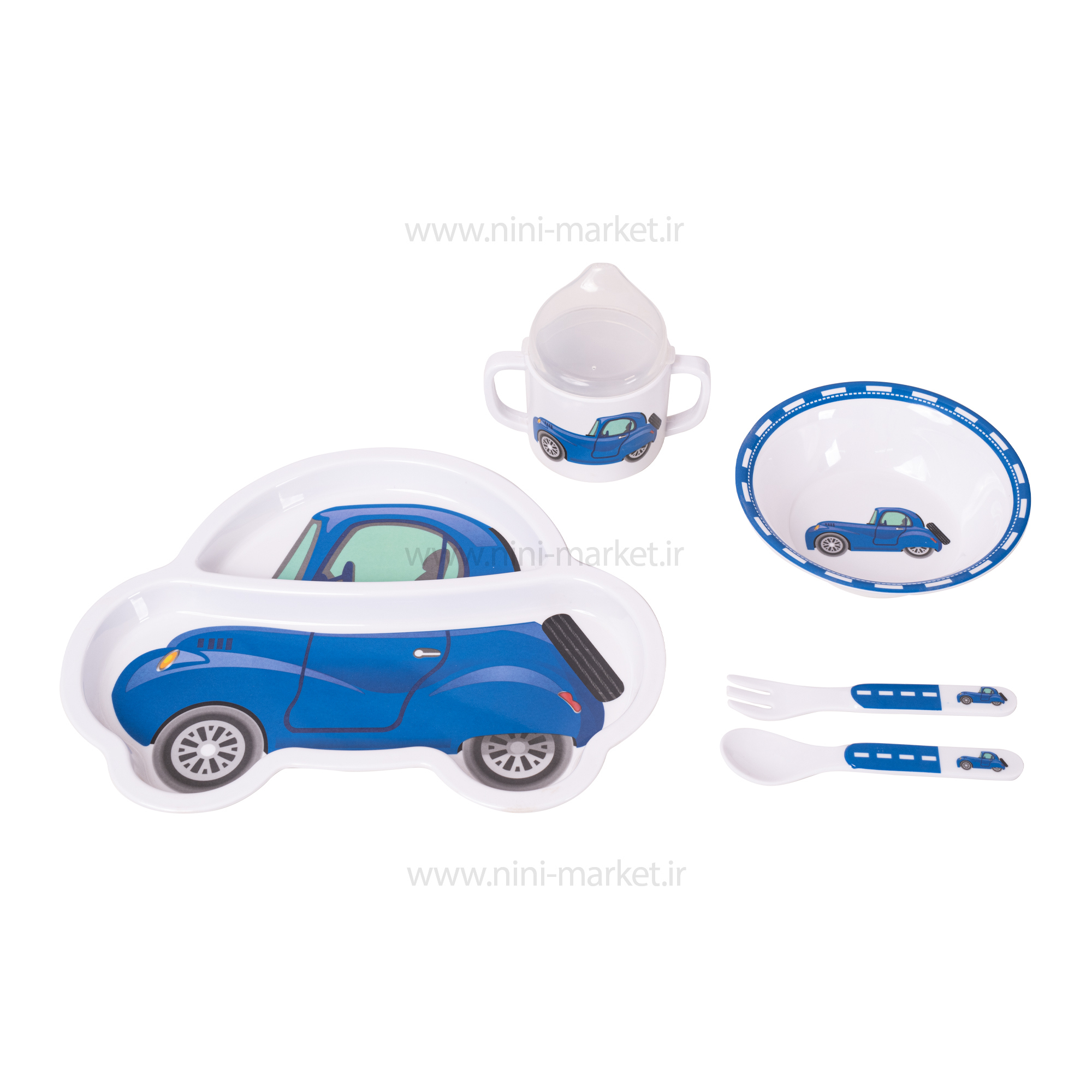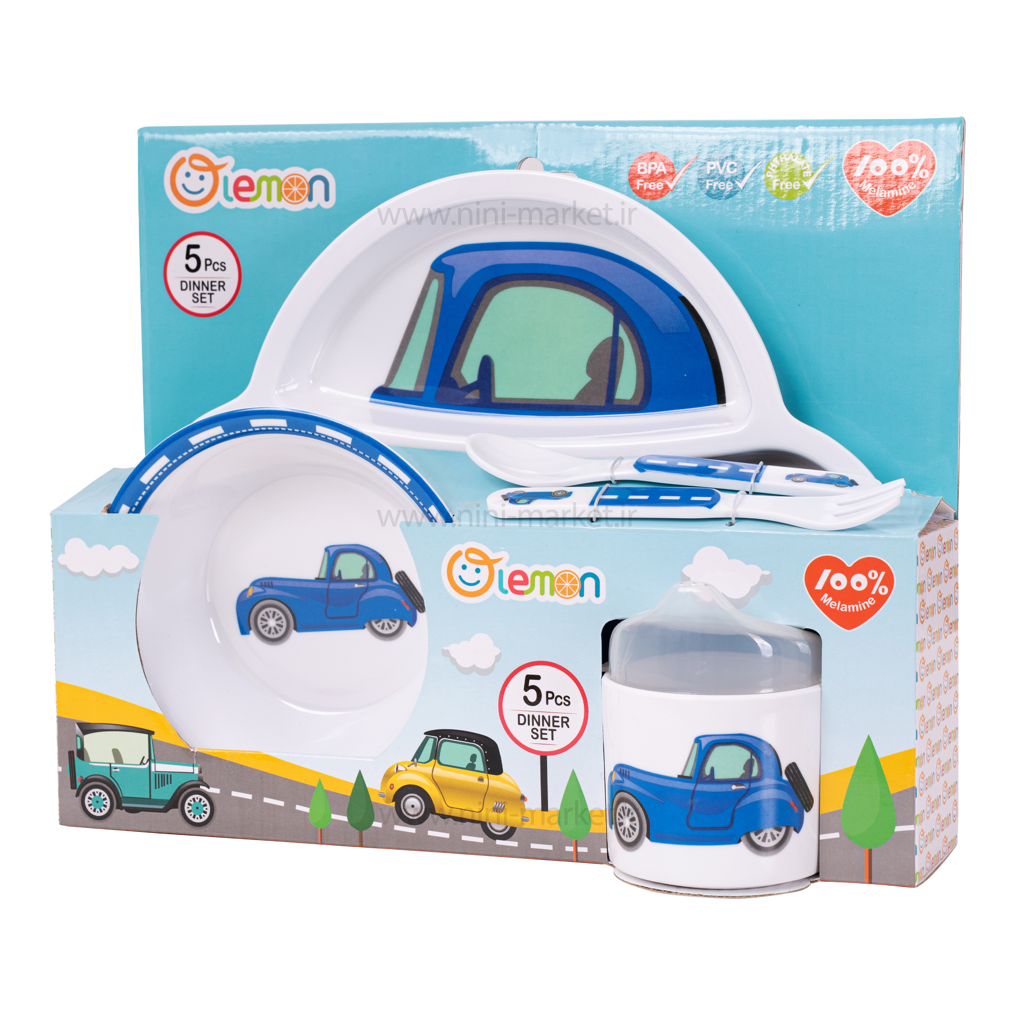 ست ظرف غذای 5 تکه کودک طرح ماشین آبی لمون Lemon