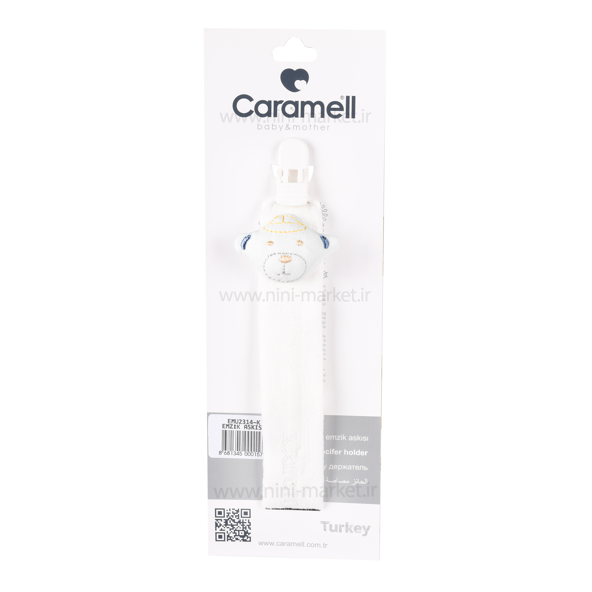 بند پستانک پولیشی خرس رنگ سفید کارامل caramell