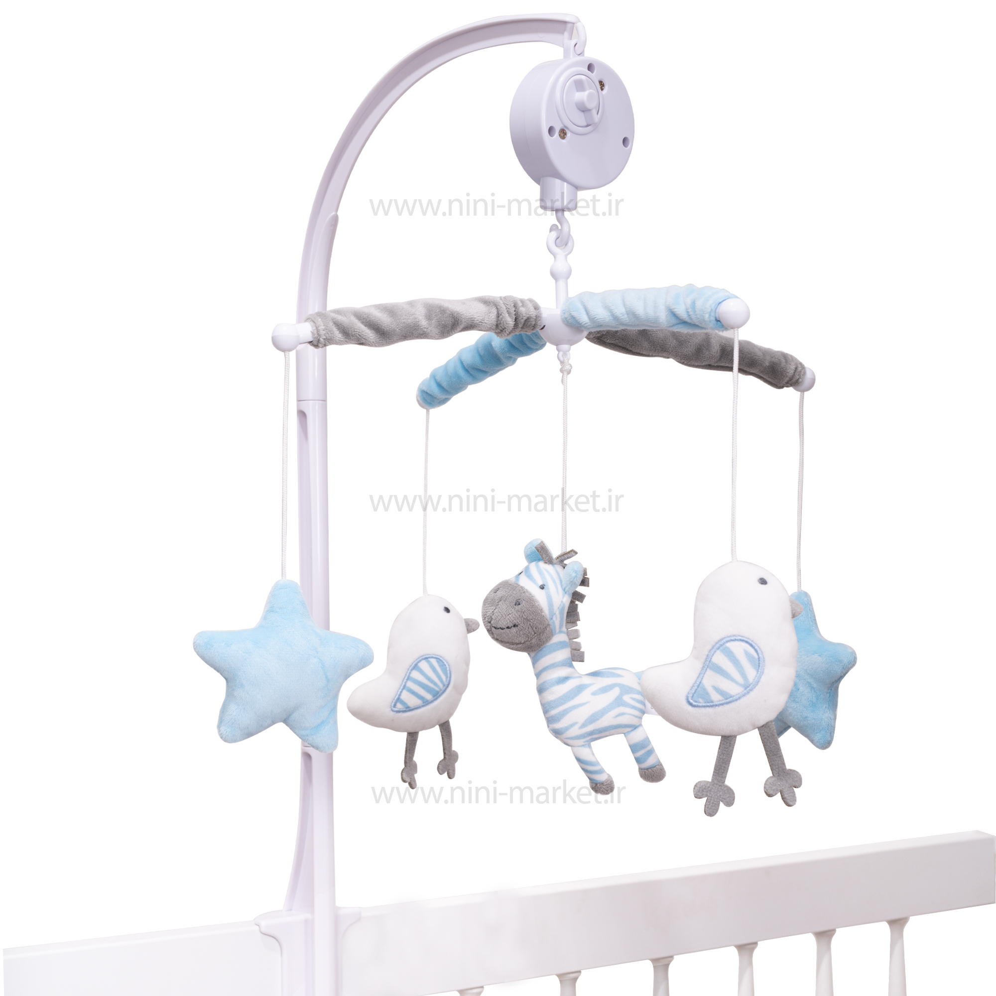 آویز تخت موزیکال طرح گورخر و جوجه آبی سانوزی Sunnozy