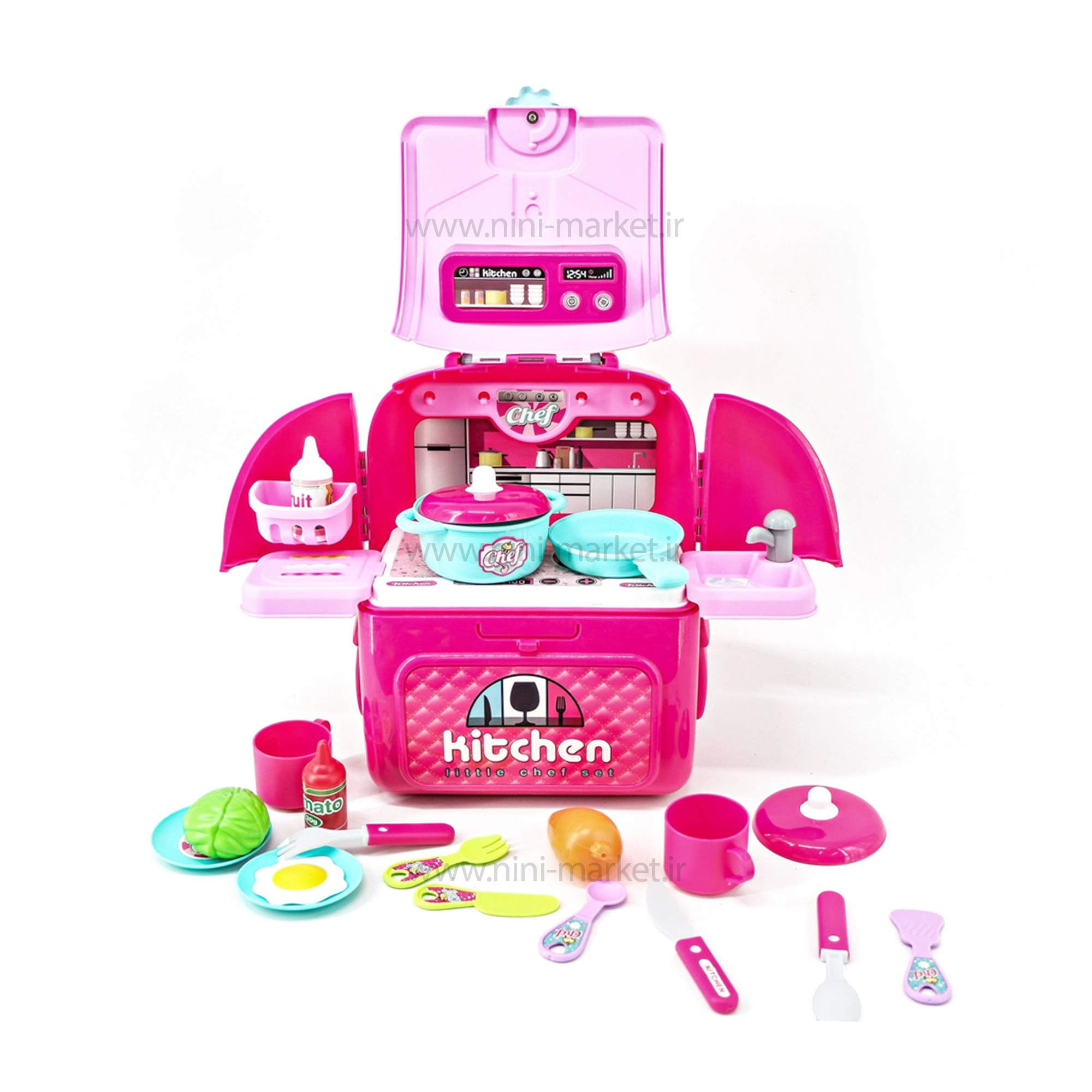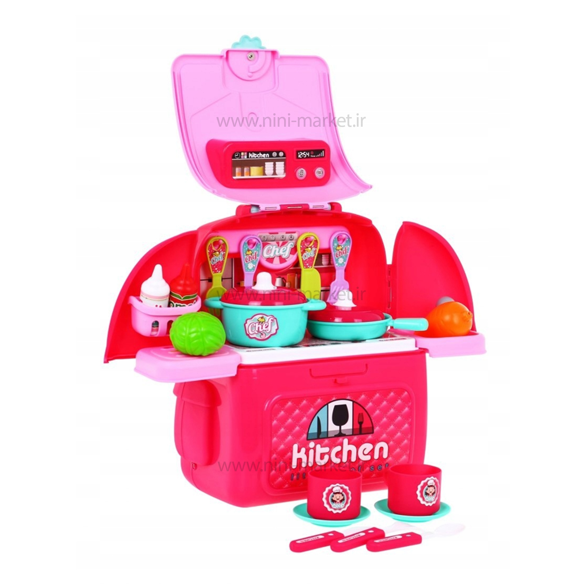 مجموعه بازی چمدان آشپز خانه برای کودک ، دارای 22 تکه که شامل : دو عدد لیوان ، قابلمه ، دو عدد سس ، 4 عدد بشقاب ، 2 عدد میوه ، مایتابه ، تخم مرغ ، قاشق ، چنگال ، چاقو و غیره می باشد. چمدان آشپز خانه بادوام - شامل یک چرخ دستی زیبا با دربهای بسته برای نگه داشتن همه اسباب بازی های آشپزی که به طور منظم برای جلوگیری از ریختن غذا تنظیم شده است.مجموعه ای عالی یا افزودنی به هر آشپزخانه اسباب بازی - این مجموعه را میتوانید به هر بچه ای هدیه دهید! این یک پاداش یا انگیزه بزرگ برای بچه ها است ، عالی برای تعطیلات ، تولدها یا هر مناسبت. این مجموعه بازی به بچه ها کمک می کند مهارت های حرکتی و هماهنگی چشم و دست خود را با استفاده از وسایل و لوازم آشپزی تظاهری در این مجموعه بازی تعاملی تنظیم کنند.