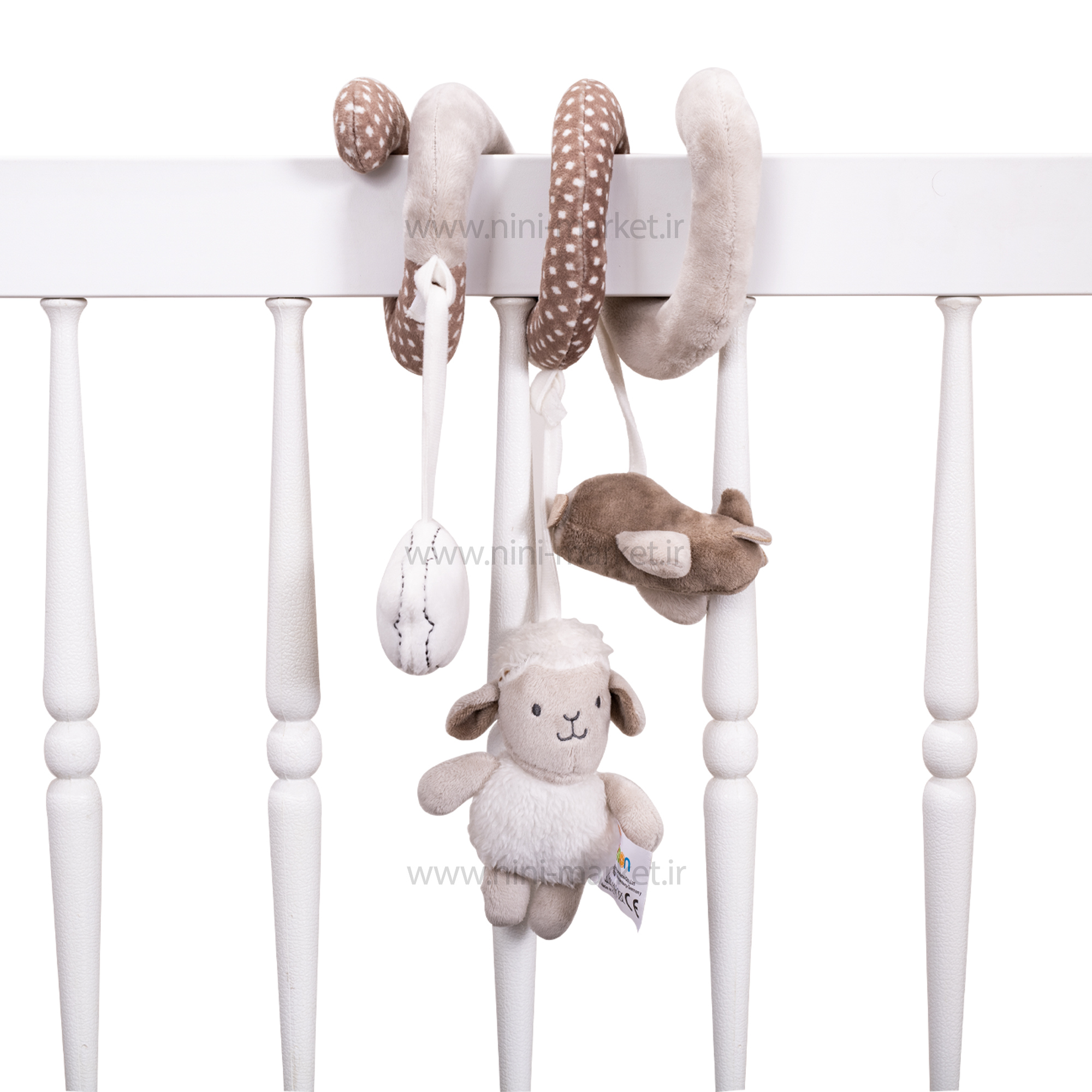 آویز تخت مارپیچ موزیکال لمون Lemon طرح بره به رنگ طوسی ، قهوه ای که بسیار دوست داشتنی و جذاب برای زیباتر شدن تخت نوزاد شما است . دارای 3 عروسک آویز بره ، هواپیما و توپ گرد است. این آویز به دلیل داشتن ترکیب رنگی، باعث شناخت رنگ ها برای نوزاد می شود. صدای موزیکالی افزون بر سرگرم کردن نوزاد، موجب تقویت قدرت شنوایی هم می شود. مناسب برای اتصال به تخت و قابل اتصال به دسته ی کالسکه و کریر است. سبک و قابل حمل است و نوزاد شما به راحتی می تواند با آن بازی کند.در تولید آن از مواد خطرآفرین و مضر برای نوزاد استفاده نشده است. فاقد هرگونه لبه ی تیز و بُرنده است.
