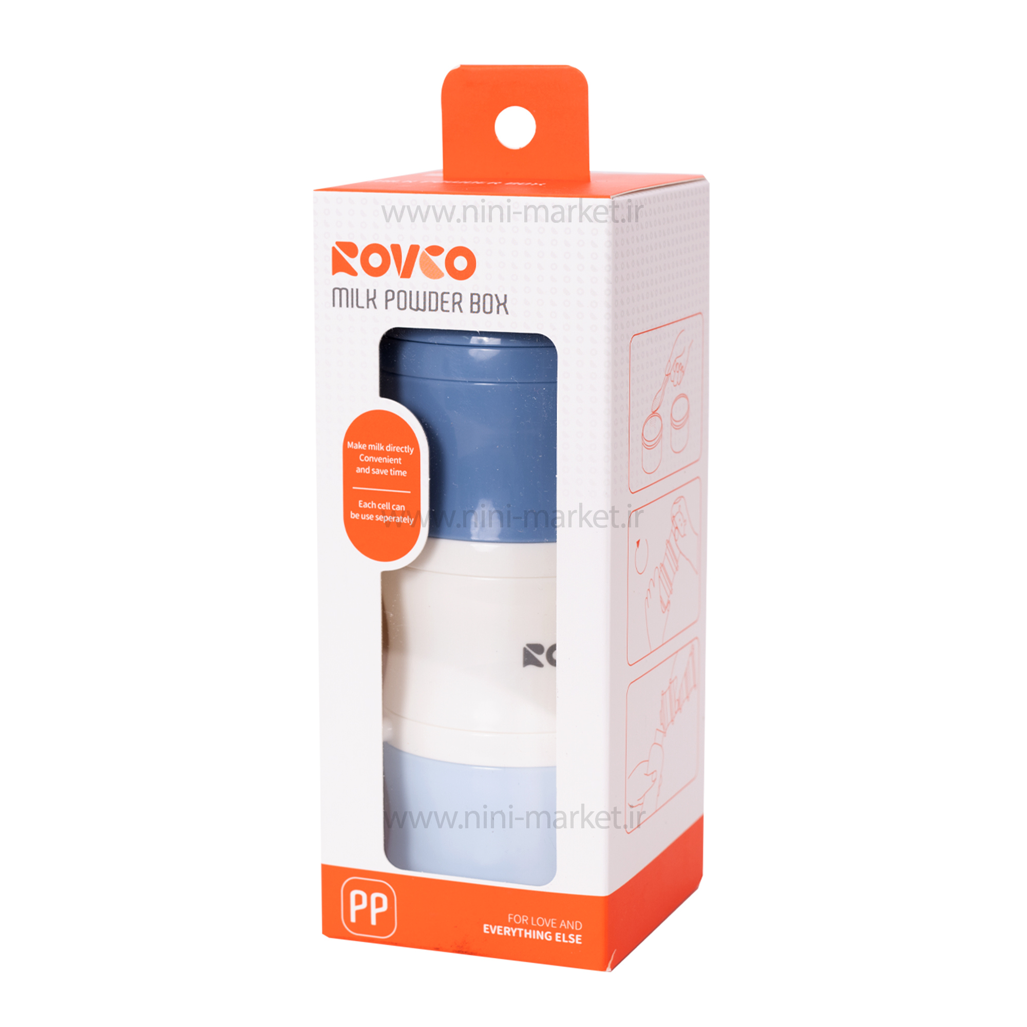 انباری غذا 3 عددی برند Rovco ظرف غذایی پر کاربرد است که از بدو تولد کودک برای قرار دادن شیر خشک مورد استفاده قرار می گیرد.وقتی کودک به 6 ماهگی می رسد، مادر می تواند علاوه بر شیرخشک سایر خوراکی و غذاهای کمکی کودک را در طبقات مختلف این انباری غذا نگهداری کند.وزن آن سبک است و حمل آن در خارج از منزل راحت می باشد، برای نگهداری غذاهای کودک در بیرون از منزل و مهدکودک و مهمانی قابل استفاده می باشد.دارای سه طبقه جداگانه می باشد که این سه ظرف کوچک بر روی یکدیگر قرار گرفته اند. دارای یک درب می باشد که بر روی طبقه بالا بسته شده است. درب طبقه بالا قابلیت باز شدن دارد و بر روی همه ی طبقات نصب می شود. هر کدام از ظروف بصورت جداگانه و مجزا قابل استفاده هستند. می توانید در هر کدام از ظرف ها غذاهای کودک را بریزید و در یخچال قرار دهید. برای نگهداری پودر شیر خشک، غذاهای کمکی کودک، میوه ها و سبزیجات خرد شده، پوره و سوپ و سایر خوراکی های کودک قابل استفاده است.