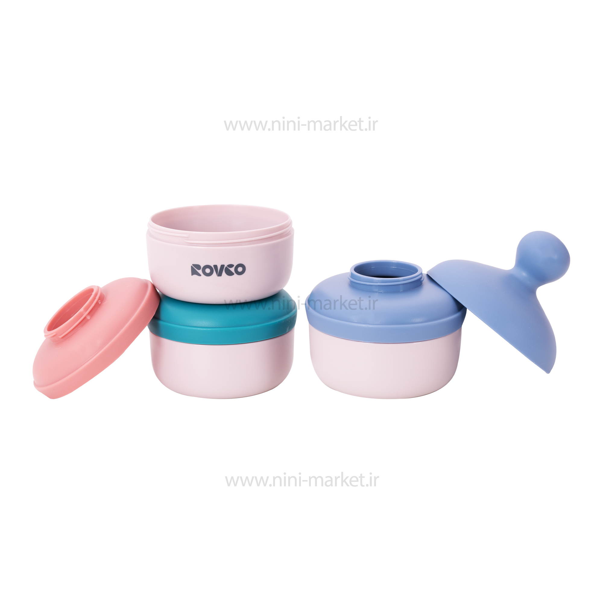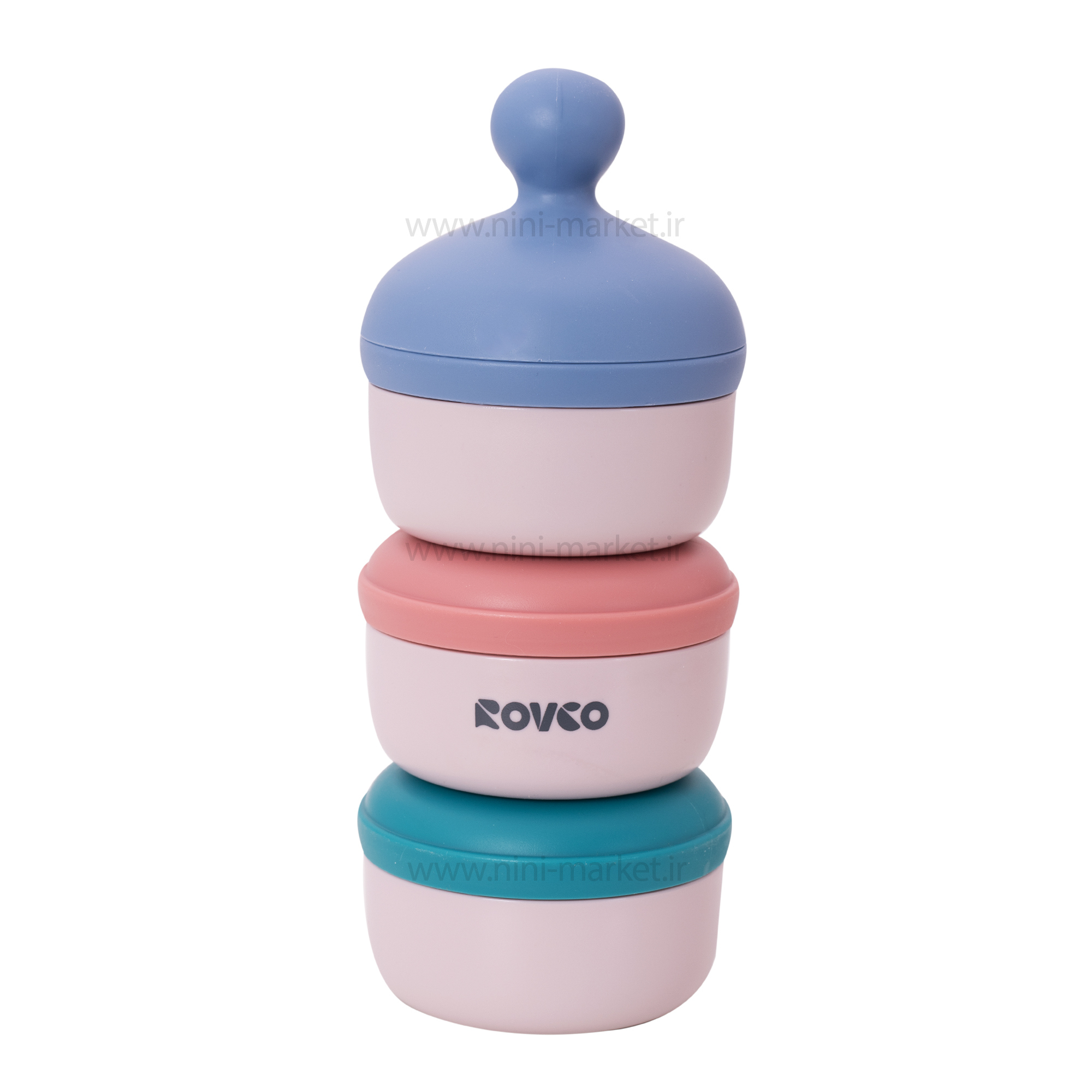 انباری غذا و شیر خشک سه طبقه رنگ آبی-صورتی رووکو Rovco