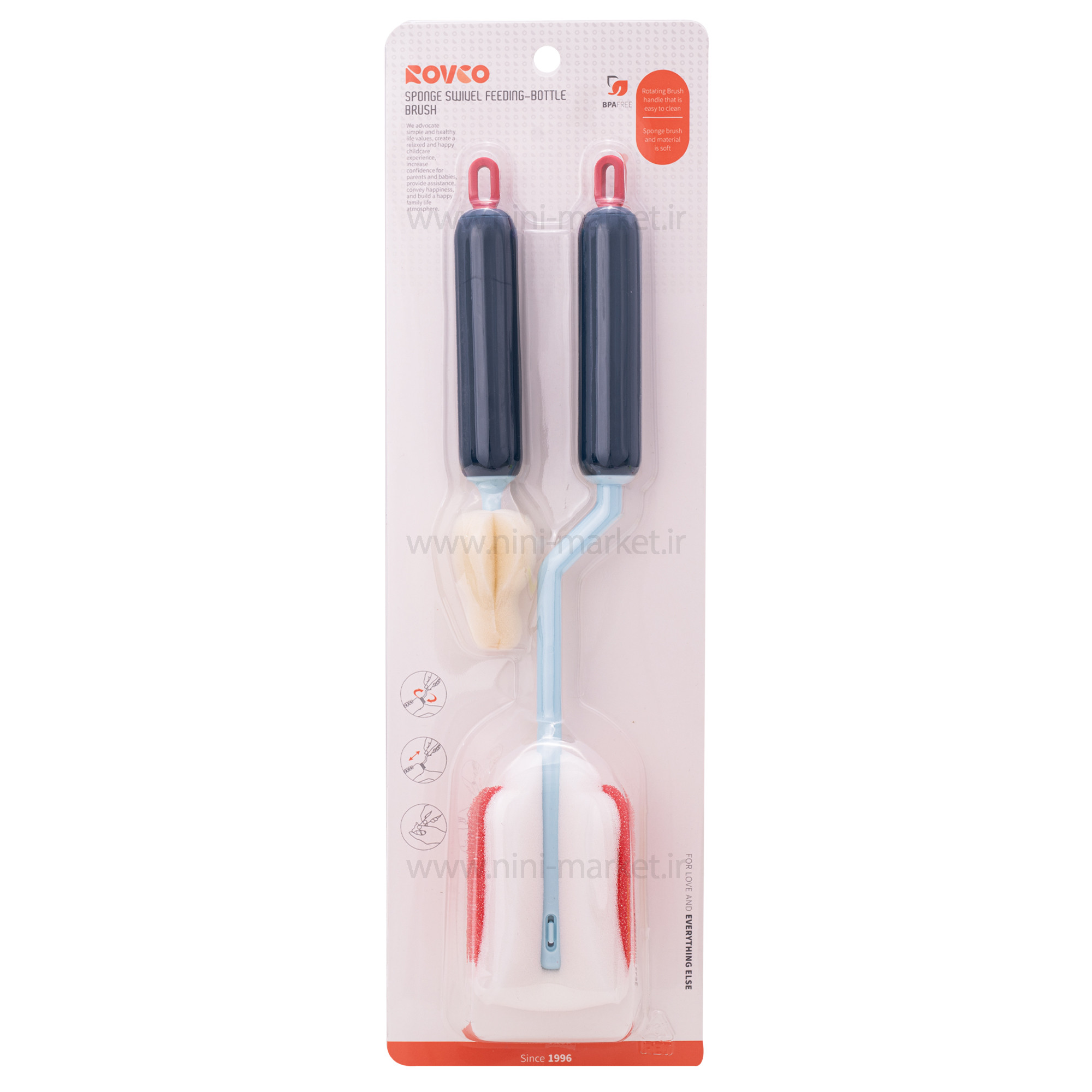 برس شیشه شور اسفنجی رنگ سرمه ای برند ROVCO شامل دو عدد برس می باشد که برس کوچک مخصوص شستشو سرشیشه و برس بزرگ مخصوص شست شو شیشه شیر است. برس بزرگ شیشه شور اسفنجی به صورت ۳۶۰ درجه می چرخد تا شیشه کاملا تمیز شود. همچنین این برس شیشه شور بسیار انعطاف پذیر می باشد. این شیشه شور دارای یک برس بزرگتر انعطاف پذیر که برای انواع سایز شیشه شیر مناسب است و یک برس کوچکتر برای سر شیشه های کودک و نوزاد شما است .