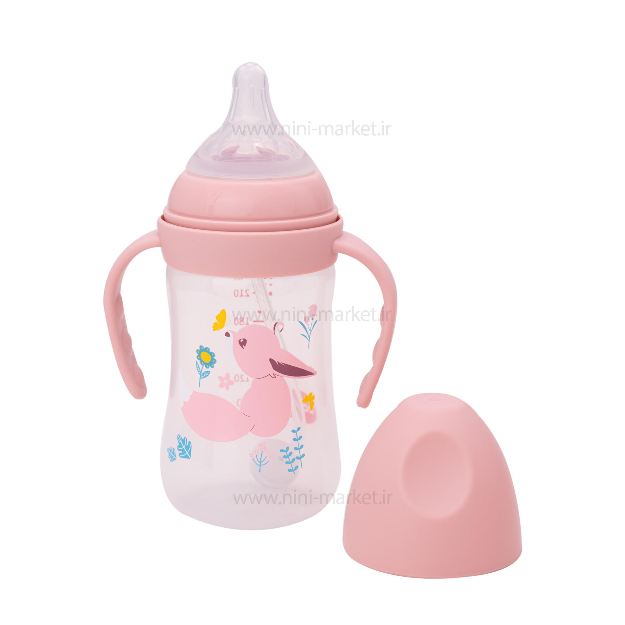 شیشه شیر دسته دار 240 میل طرح روباه رووکو Rovco
