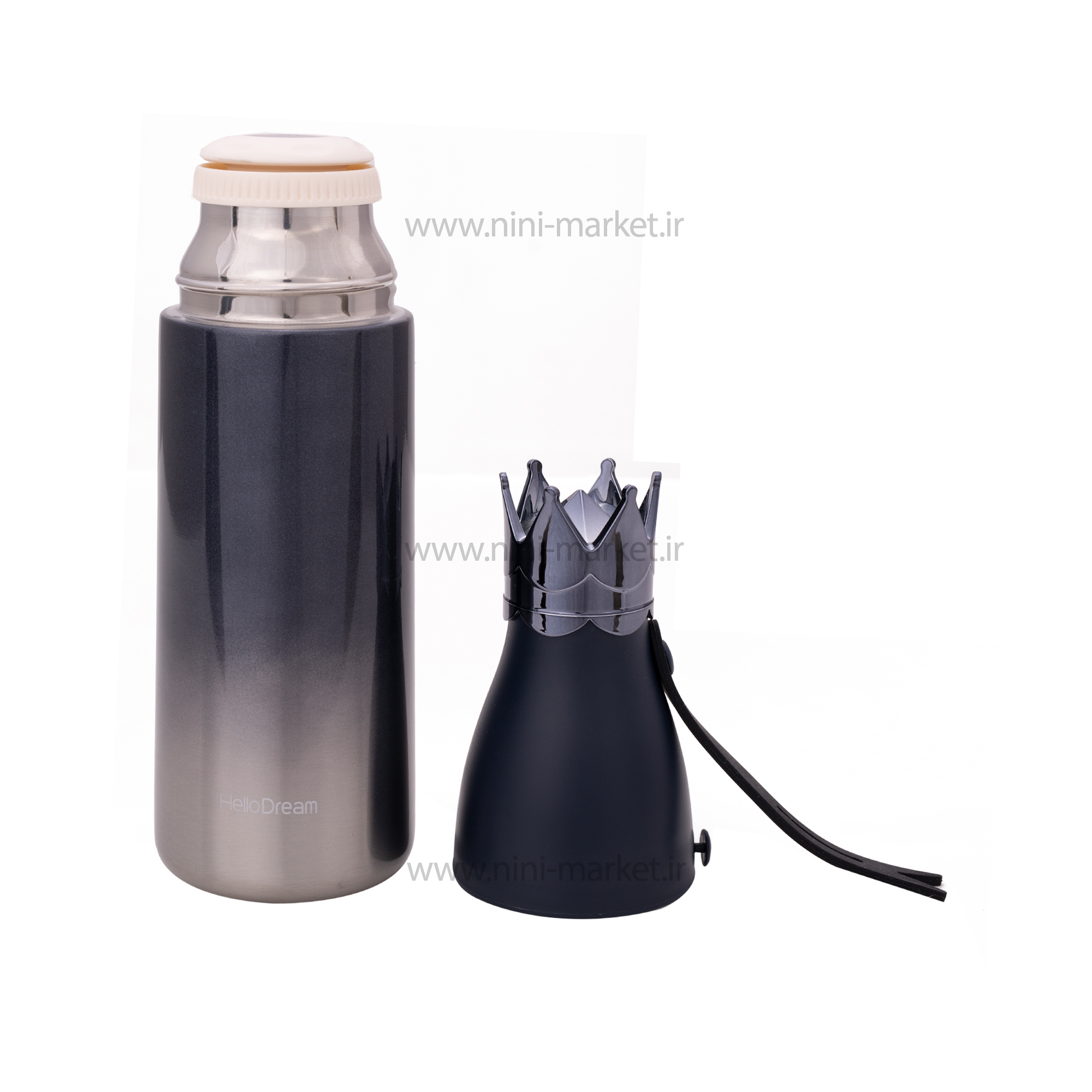 فلاسک فانتزی طرح تاج برند Hello Dream یک فلاسک شیک با طراح فانتزی و جذاب برای مشکل پسندان است . قسمت بالایی این فلاسک جدا می شود و به عنوان یک لیوان می تواند مورد استفاده قرار بگیرد . تاج بالایی این فلاسک مانند پایه عمل می کند. طراحی ضد چکه به منظور جلوگیری از نشت آب دارد.دسته ی این محصول منعطف به راحتی قابل بلند کردن و مجدد تخت شدن است.  لایه ای بین دیواره ی اصلی و درونی فلاسک تعبیه شده که از دست رفتن دما را به تاخیر بیشتری می اندازد.