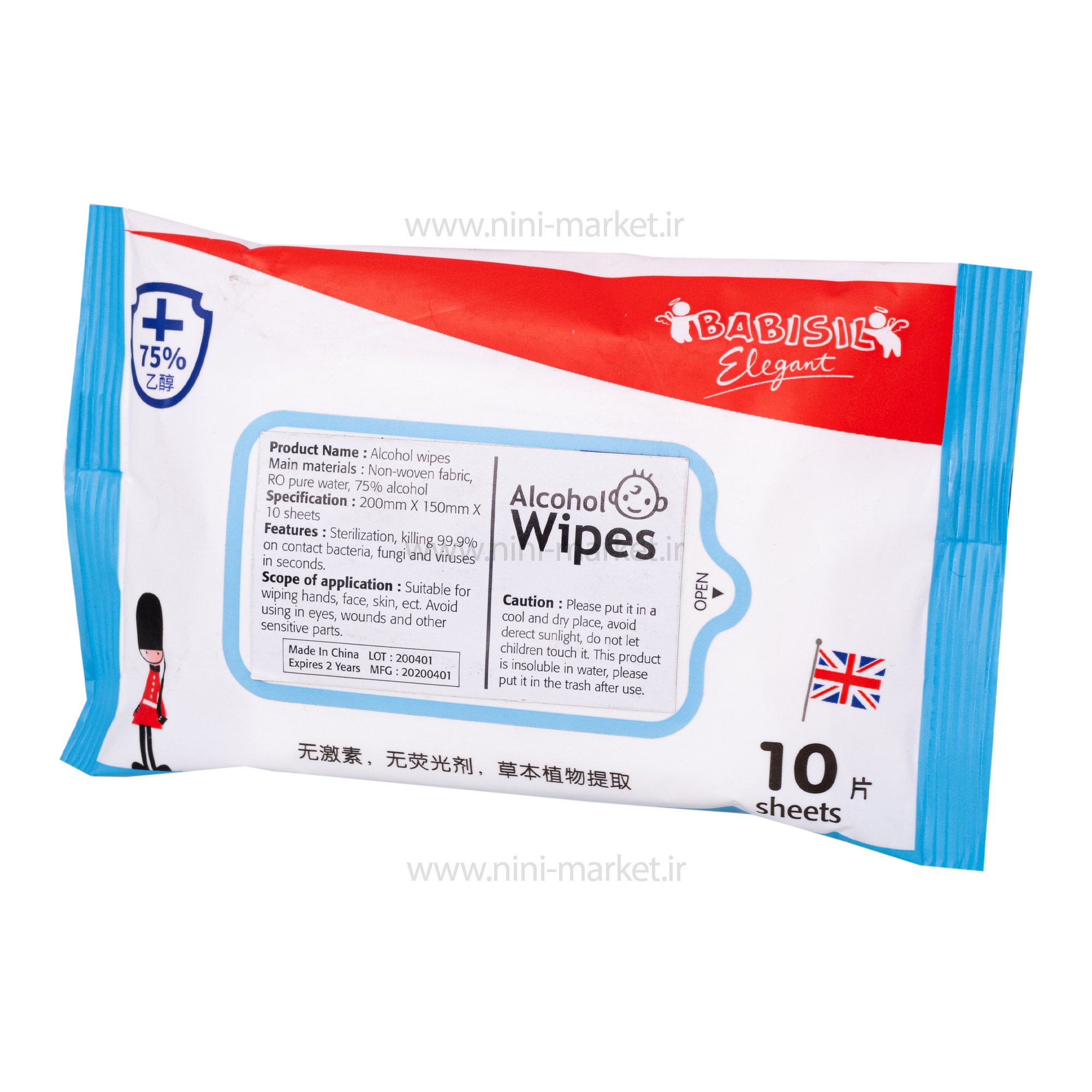 دستمال مرطوب و استریل کننده بی بی سیل Babisil بسته 10 عددی