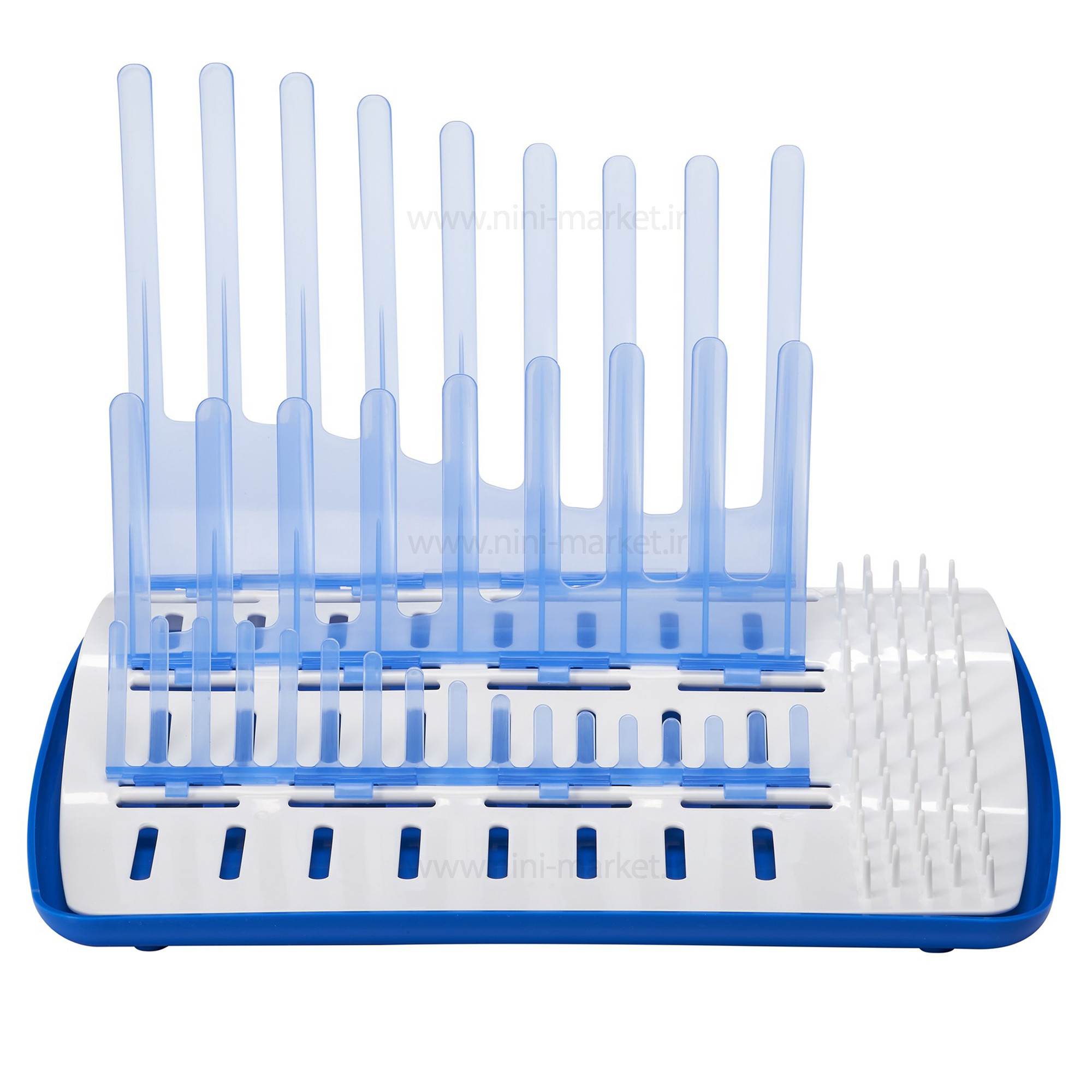 • مزیت : دارای دندانه مناسب جهت گرفتن رطوبت دارای یک عدد سینی جهت خروج راحت‌تر آب خشک کن تاشو- فضای کمی را اشغال میکند- فاقد BPA و هرگونه مواد مضر شیمیایی