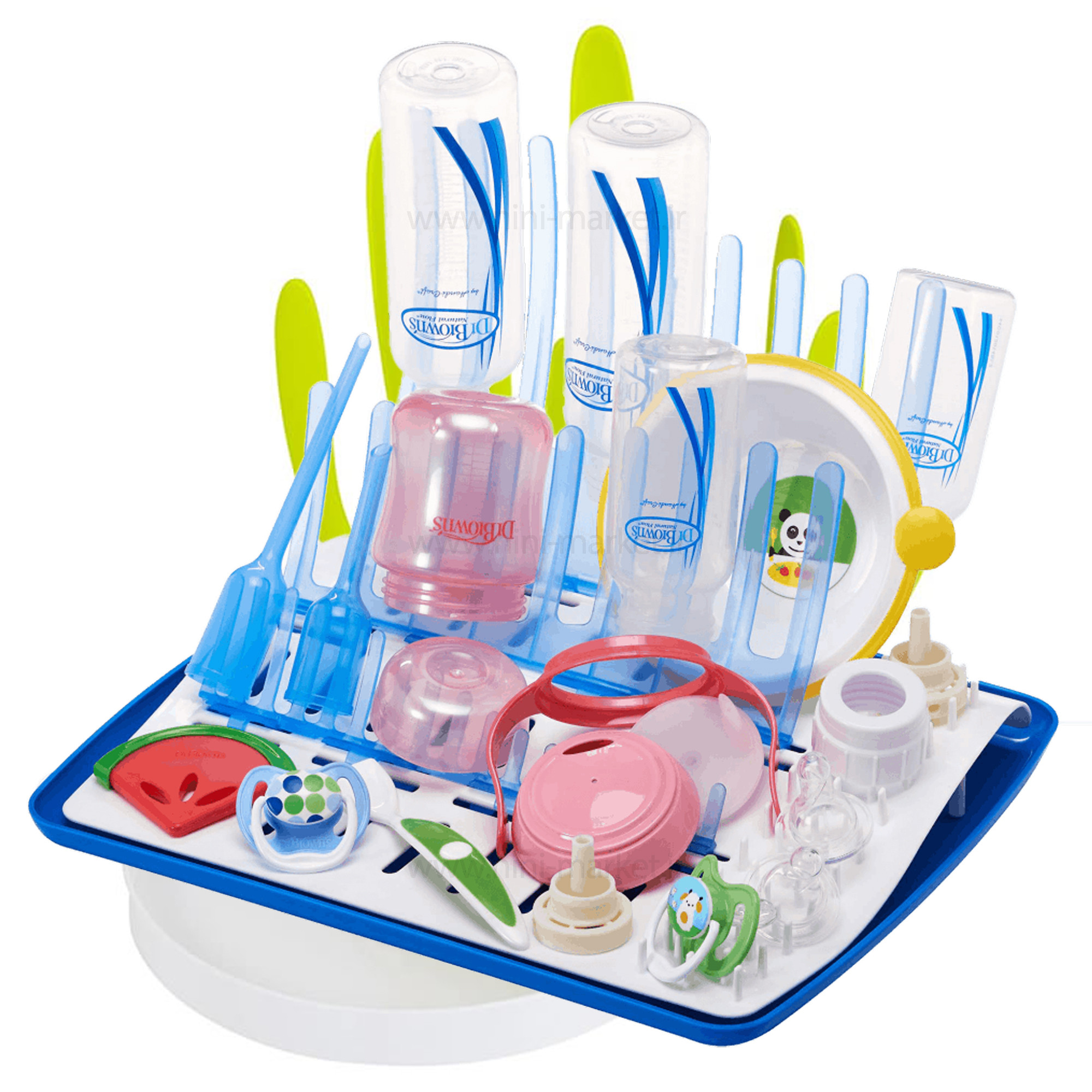 خشک کن لوازم دکتر براون قابلیت خشک کردن 12 عدد شیشه شیر دکتر براون و 8 عدد سرشیشه و پستانک ها دارد . خشک کن لوازم دکتر براون که فضای کمی را اشغال می کند دارای یک عدد سینی جهت نگهداری و خروج راحتر آب است . خشک کن لوازم دکتر براون به راحتی قابل تمیز کردن است و قابل استفاده در ماشین ظرفشویی می باشد . دارای سه ردیف شاخه جهت نگهداشتن شیشه شیر به صورت عمودی است .خشک کن محصولات دکتر براون دارای دندانه و مناسب برای گرفتن رطوبت بطری شیر , سرشیشه , پستانک , دندانگیر و سایر لوازم نوزاد است.این محصول از برند دکتر براون قابل استفاده برای همه شیشه شیرهای 60 تا 250 میلی لیتر این برند و سایر برندهای دیگر می باشد.