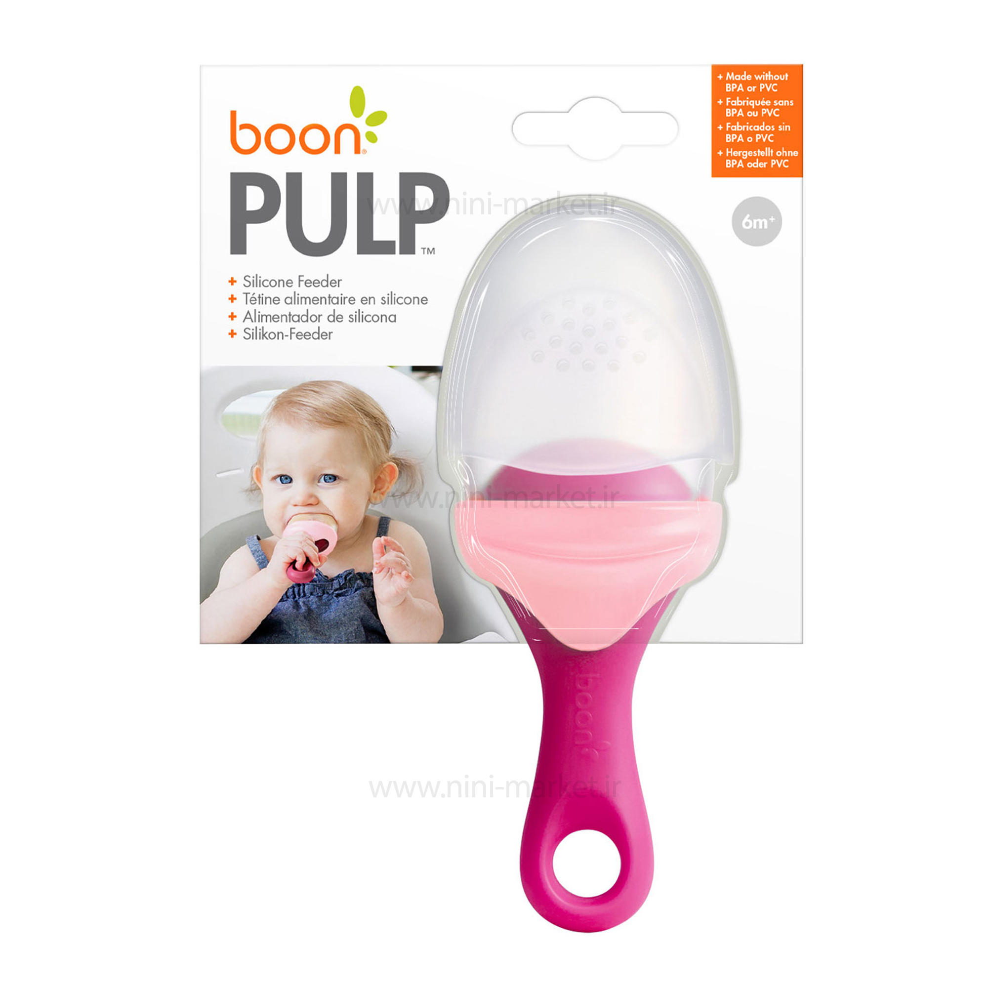 توری میوه خوری سیلیکونی رنگ سرخابی-صورتی بون Boon