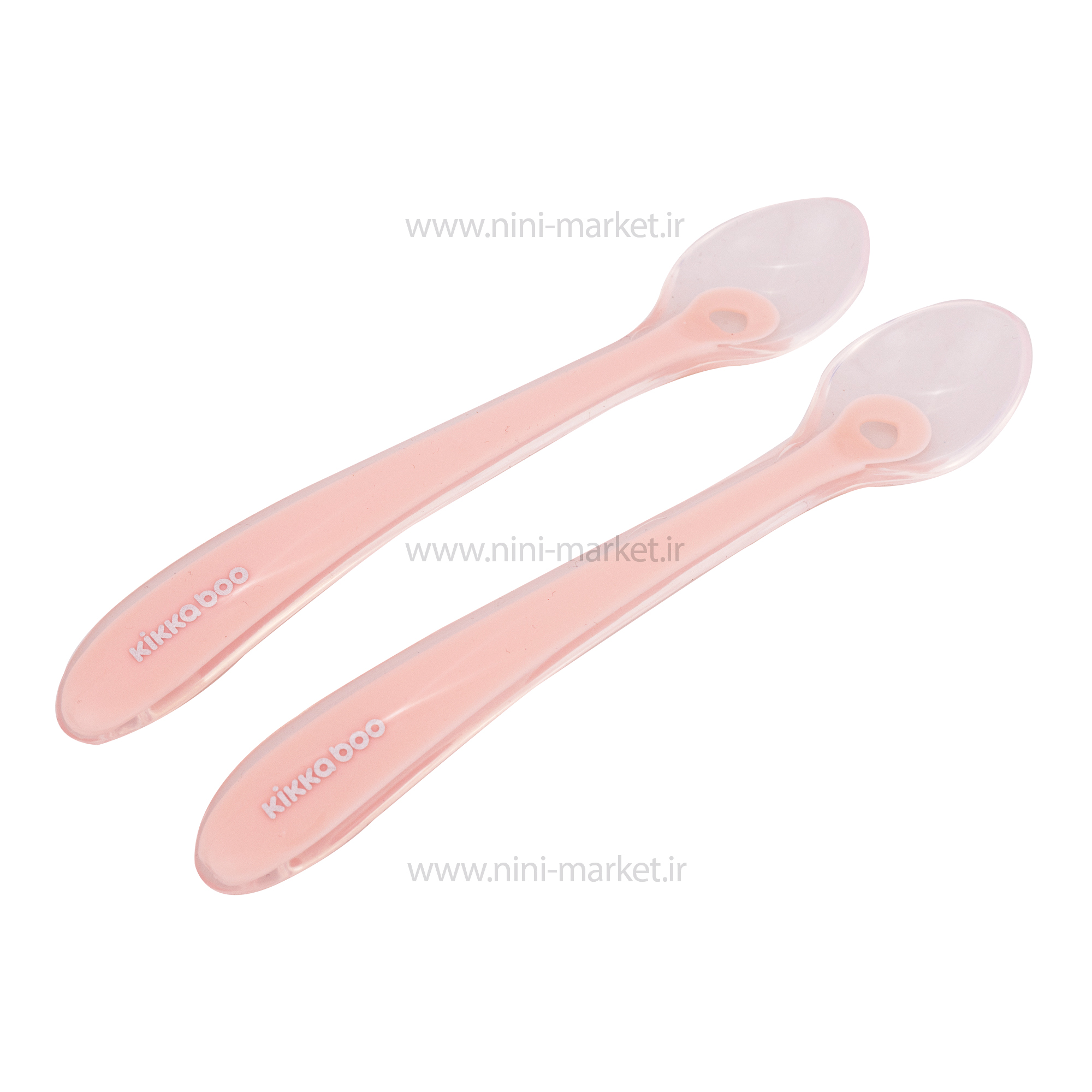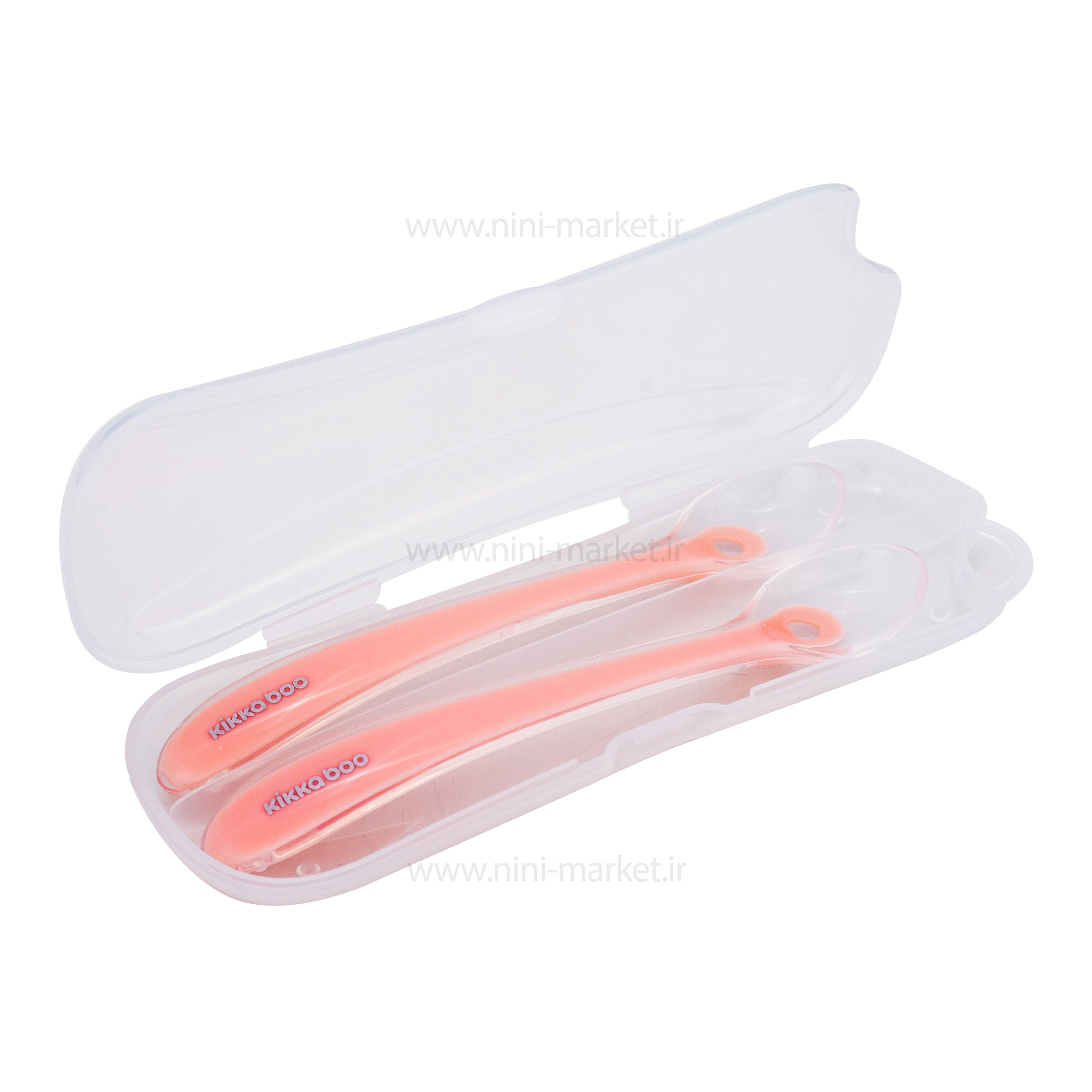 قاشق دو عددی سیلیکونی همراه با قاب رنگ صورتی کیکابو Kikkaboo