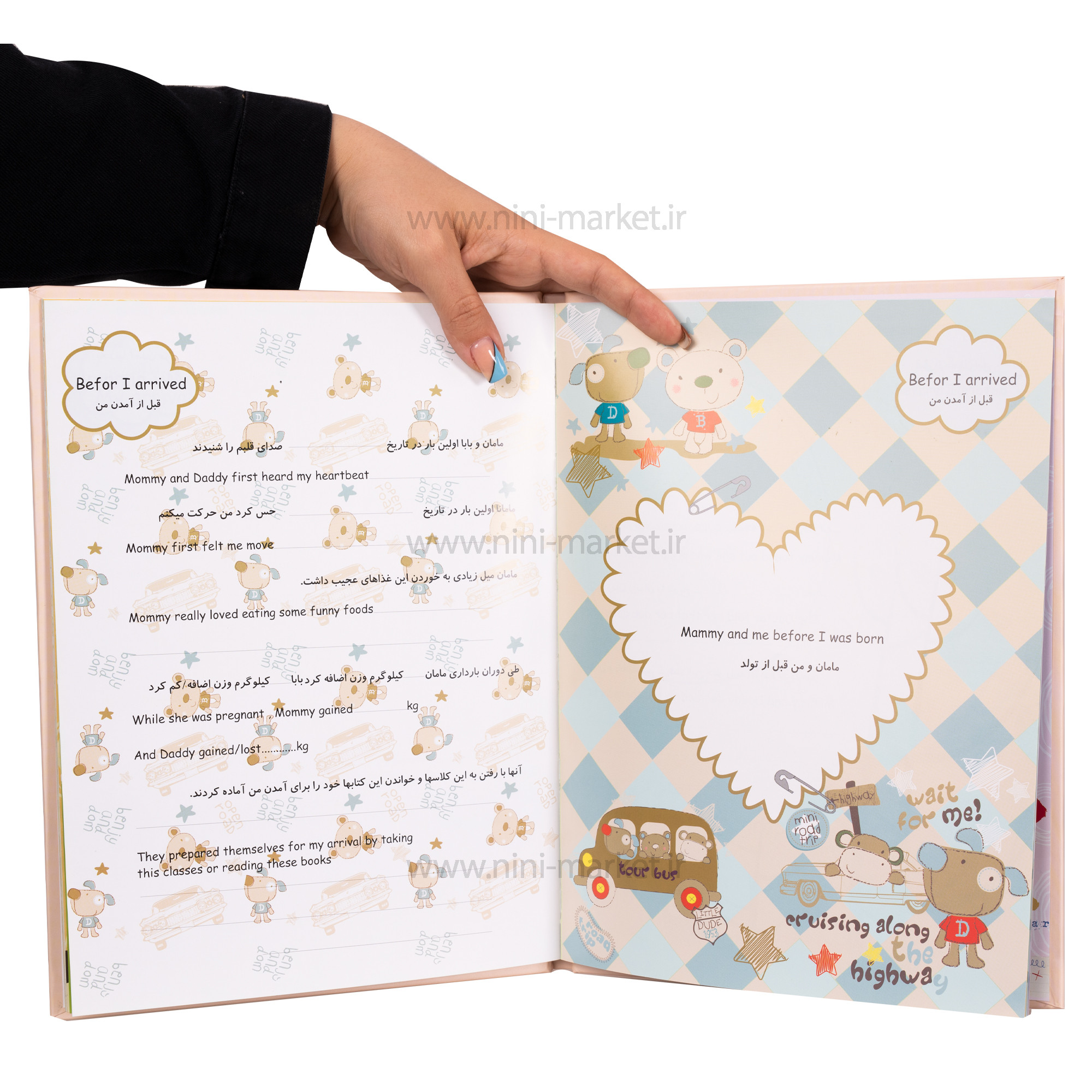 این آلبوم محصولی مناسب جهت ثبت تمام خاطرات شیرین دوران بارداری تا قبل از مدرسه کودک دلبند شماست. دفتر خاطرات سال های کودکی من، آلبوم خاطرات نوزادی  که با طرح ها و رنگ های شاد و متنوع عرضه می شود. خاطرات شیرین هر مرحله از رشد کودکتان( اثر کف پا، کف دست، دندان درآوردن، عکسهای تولد، اصلاح موی سر...) را می‌توانید یادداشت کرده و در کنار آن عکس ان مرحله را چسبانده و حس و حال زیبای خودتان را ماندگار کنید. این آلبوم دارای 26 برگ بوده و ابعاد آن 27*21 سانتی متر می باشد. صفحات مختلف این آلبوم شامل مشخصات تولد کودک، مشخصات قبل از تولد، شرح مشخصات اعضای خانواده و فامیل، مشخصات پدر و مادر اولین روز مدرسه و ... است. پرکردن صفحات این آلبوم می تواند خاطرات مکتوب و دوست داشتنی ای را از دوران بارداری مادر تا دوران کودکی فرزندتان برای شما و کودک دلبندتان ثبت نماید. این آلبوم از زیباترین هدایایی است که شما می توانید به کودک خود هدیه دهید و مطمئنا او را در دوران بزرگسالی خوشحال خواهید کرد. شما می توانید به کمک این آلبوم خاطراتی که ممکن است از ذهنتان پاک شود را ماندگار نموده و با ورق زدن آن در آینده اوقات خوش و زیبایی را برای خود بسازید.