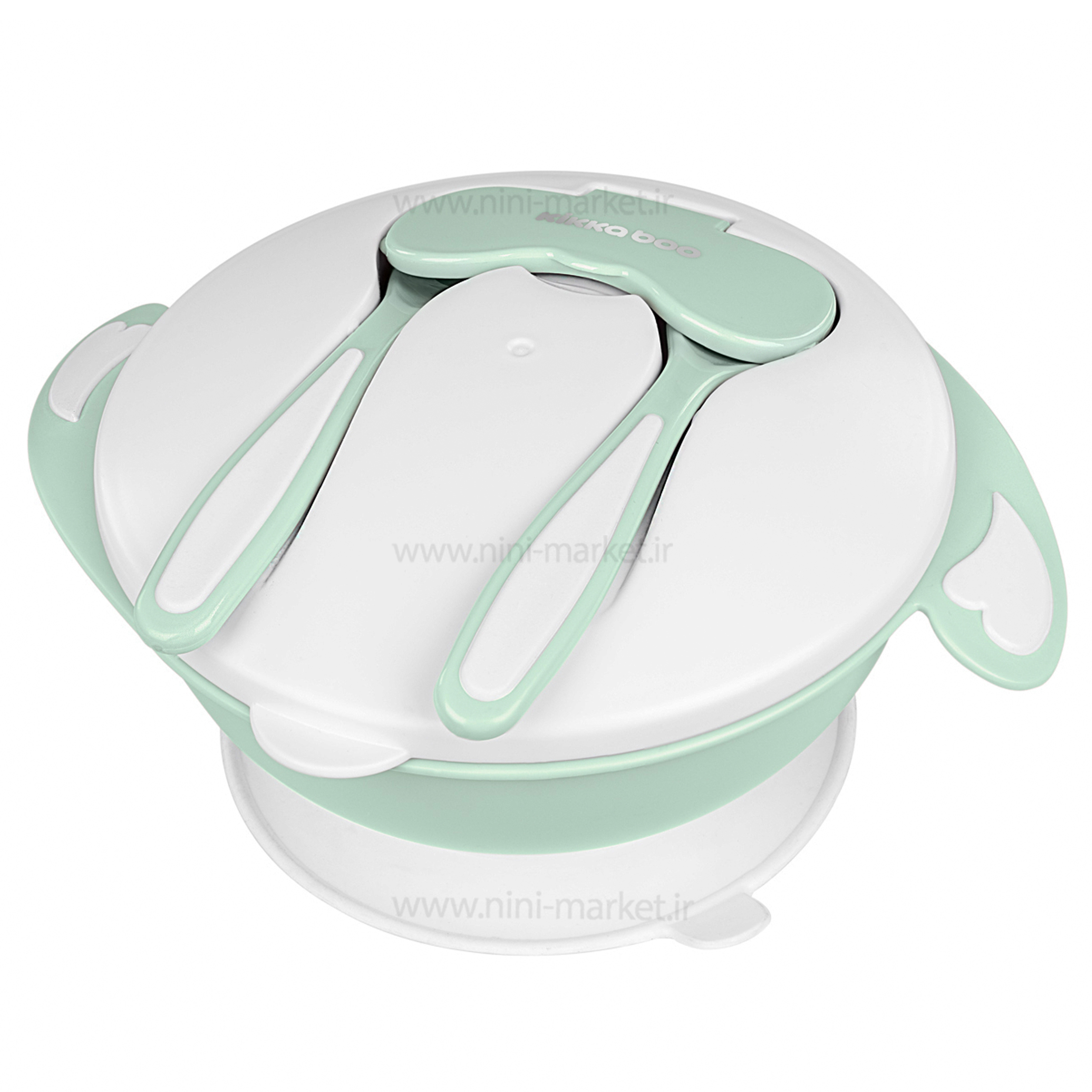 ظرف غذا چسبان و قاشق کیکابو Kikkaboo رنگ سبز