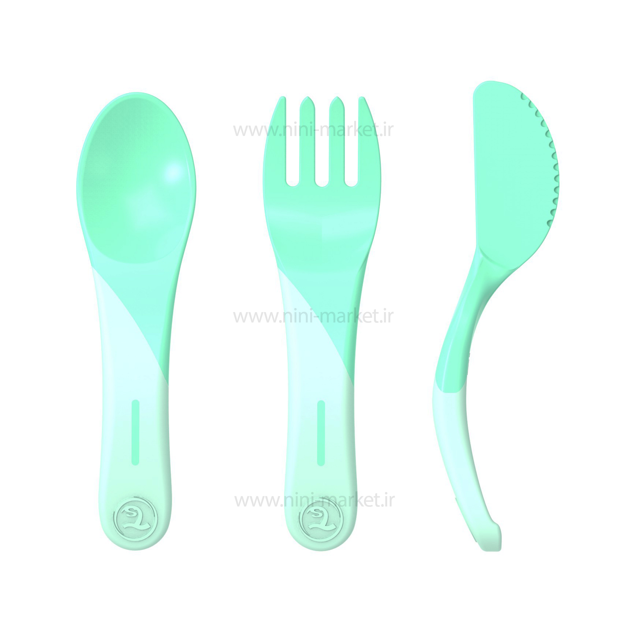 ست قاشق، چاقو و چنگال 6+ ماه پاستل سبز تویست شیک Twistshake