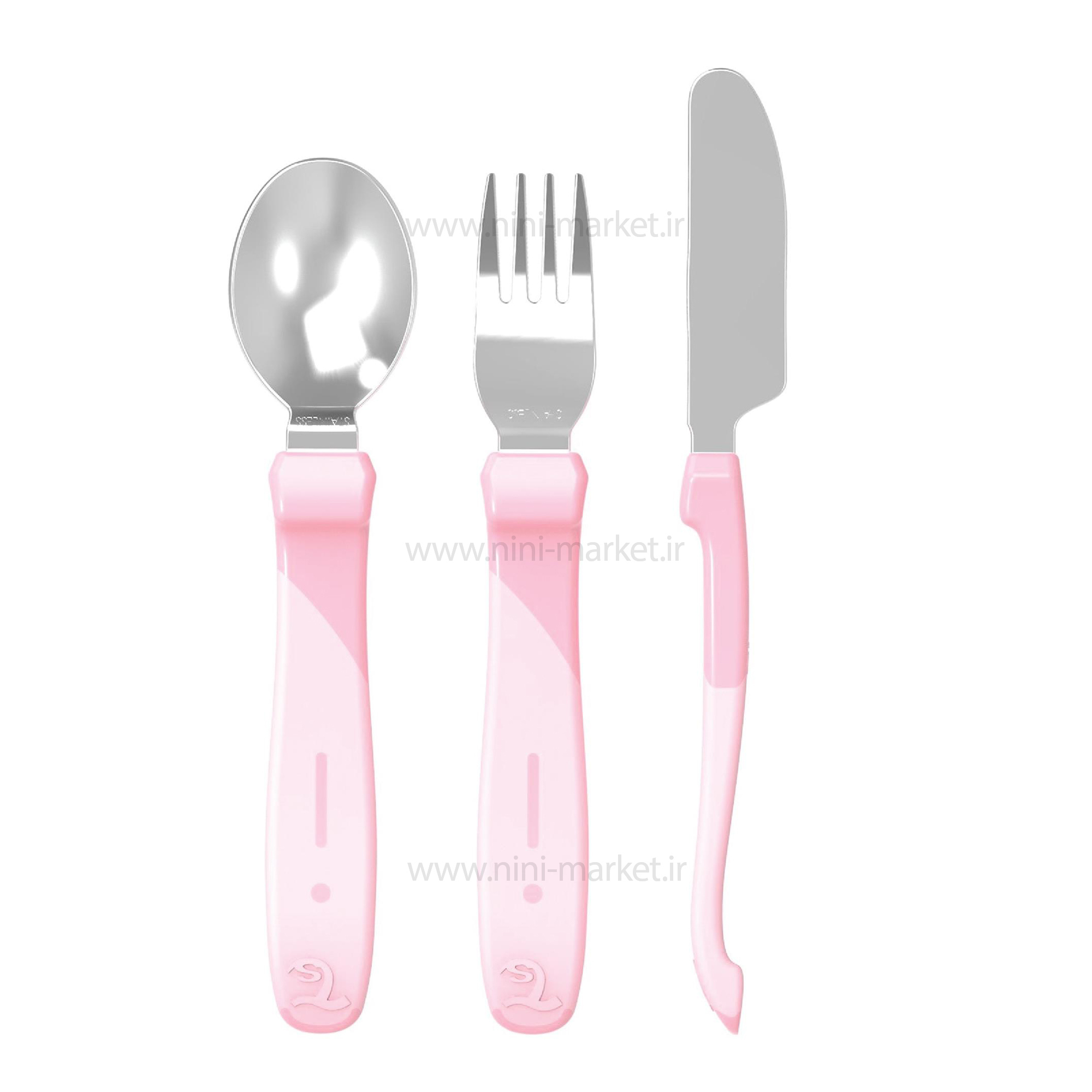 ست قاشق و چنگال و چاقوی فلزی پاستل صورتی توییست شیک Twistshake