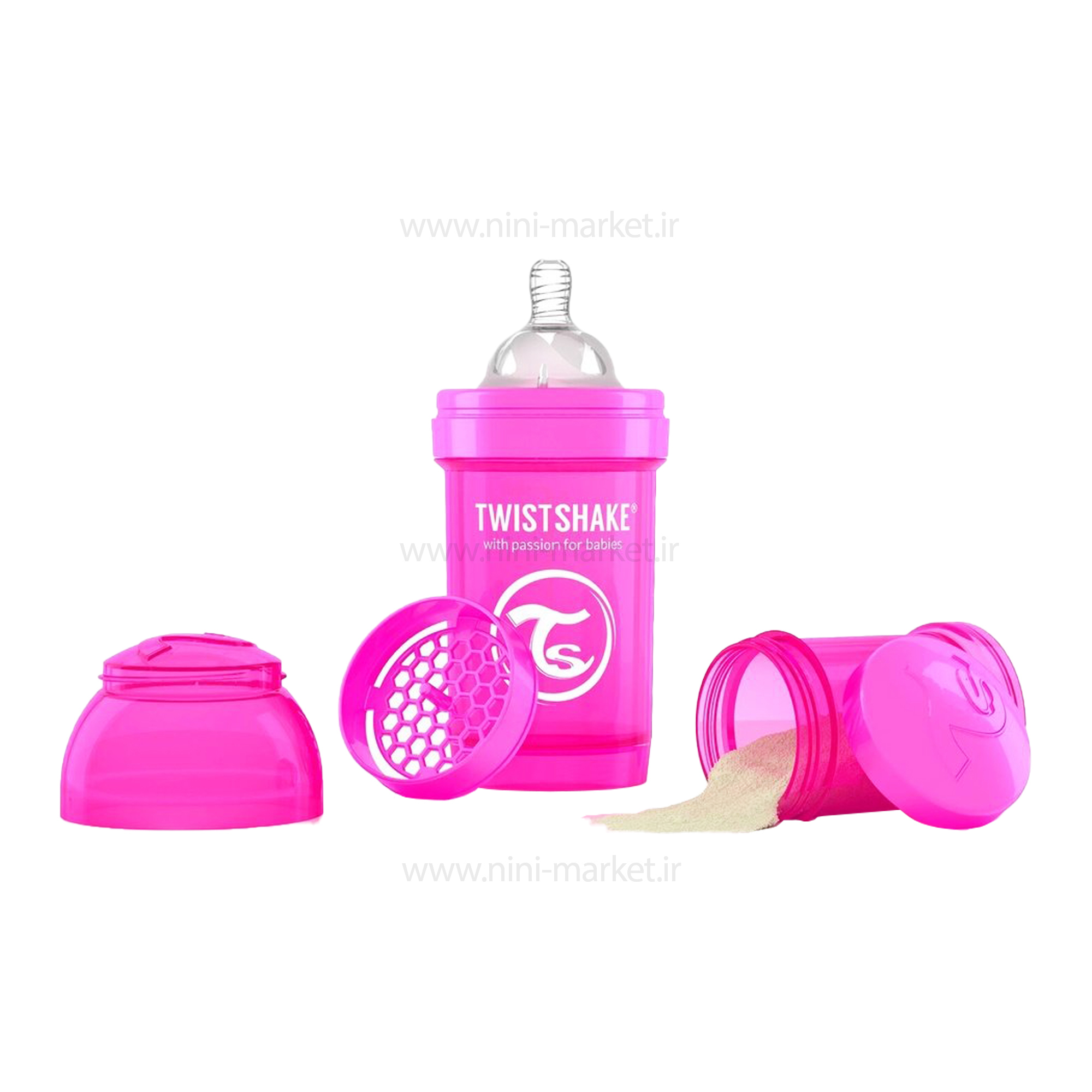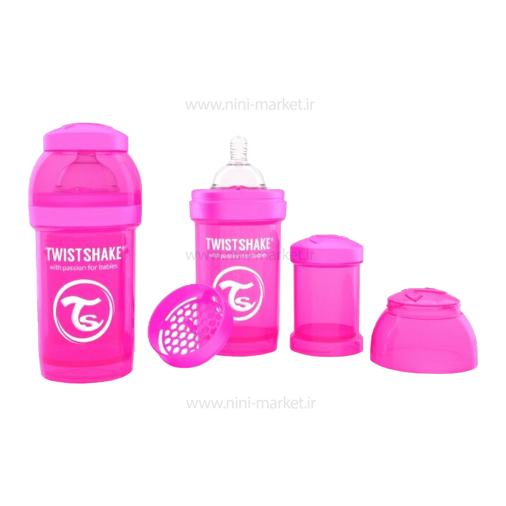 شیشه شیر ضد نفخ 180 میل صورتی تویست شیک Twistshake