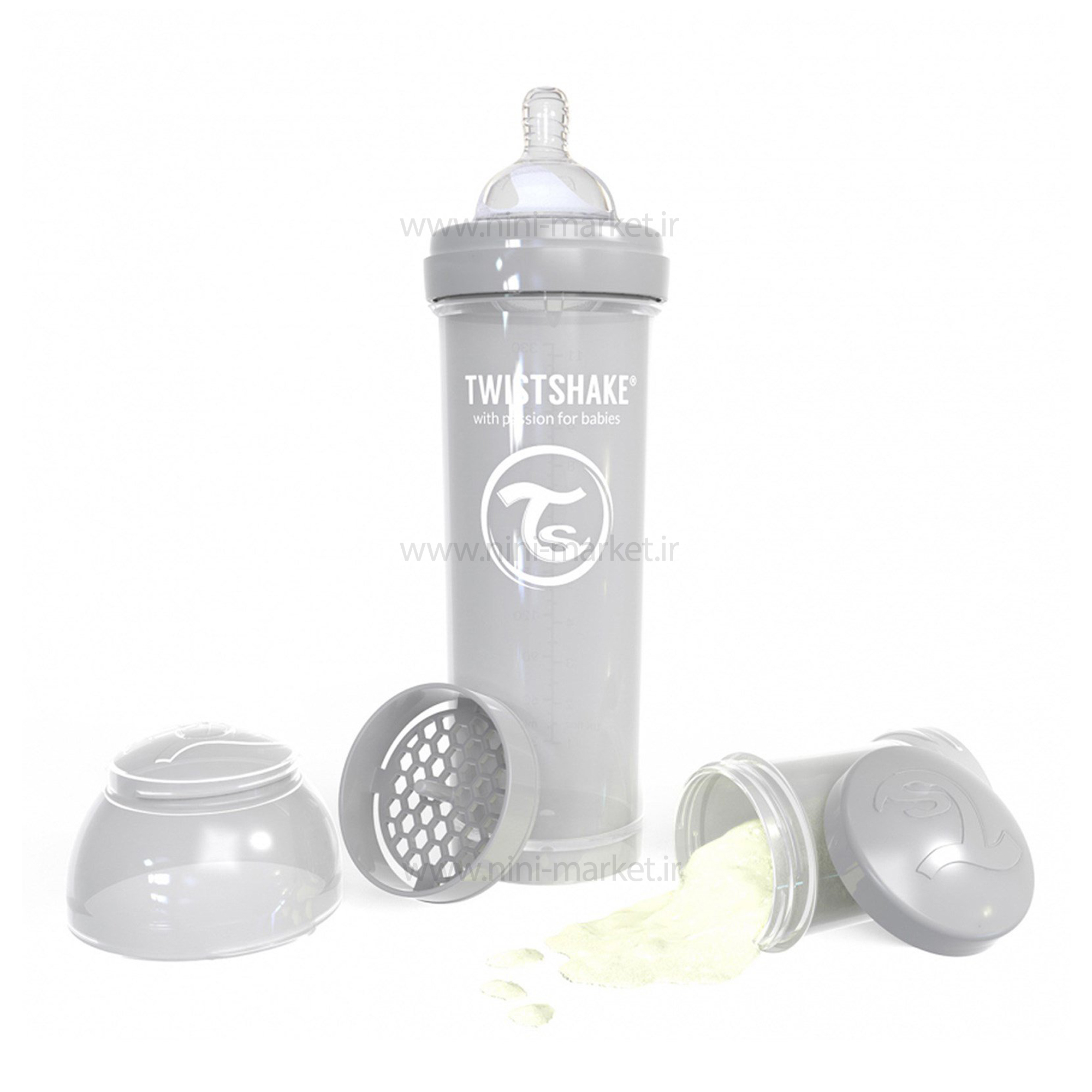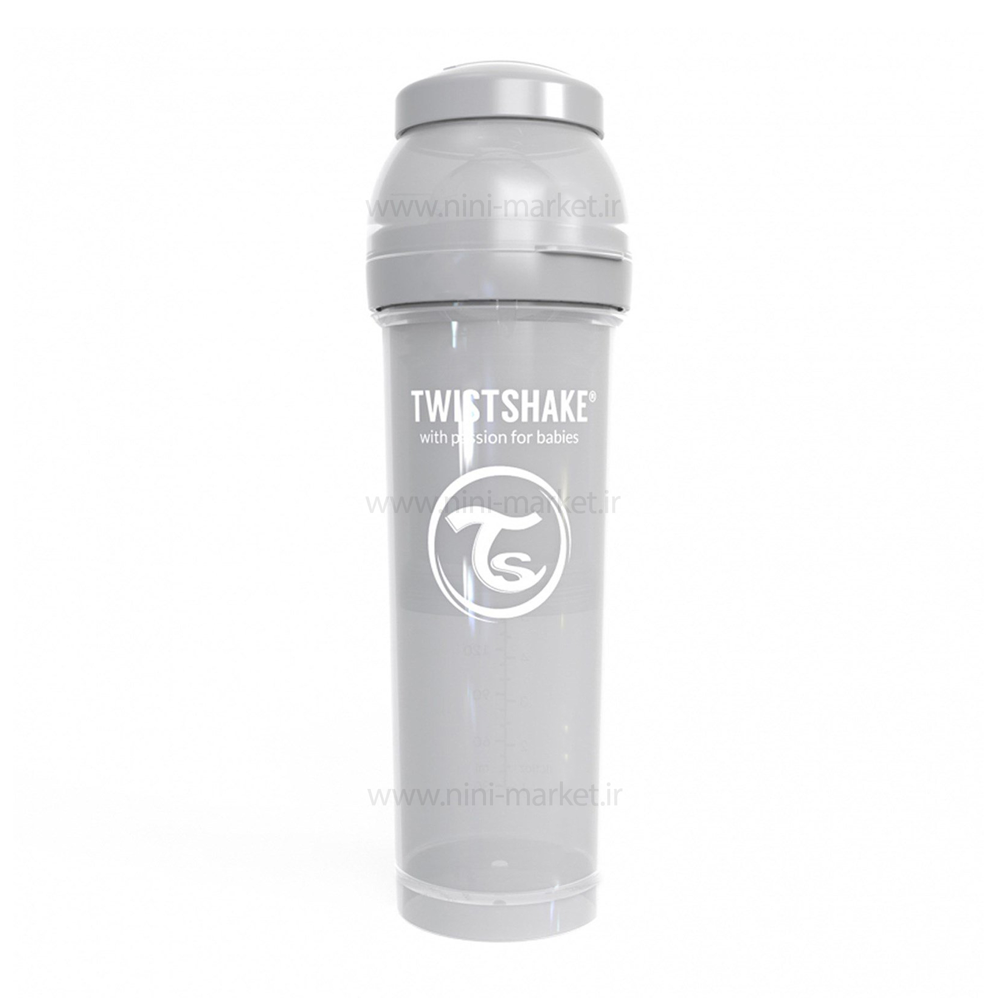 شیشه شیر طلقی ضدنفخ 330 میل طوسی تویست شیک Twistshake