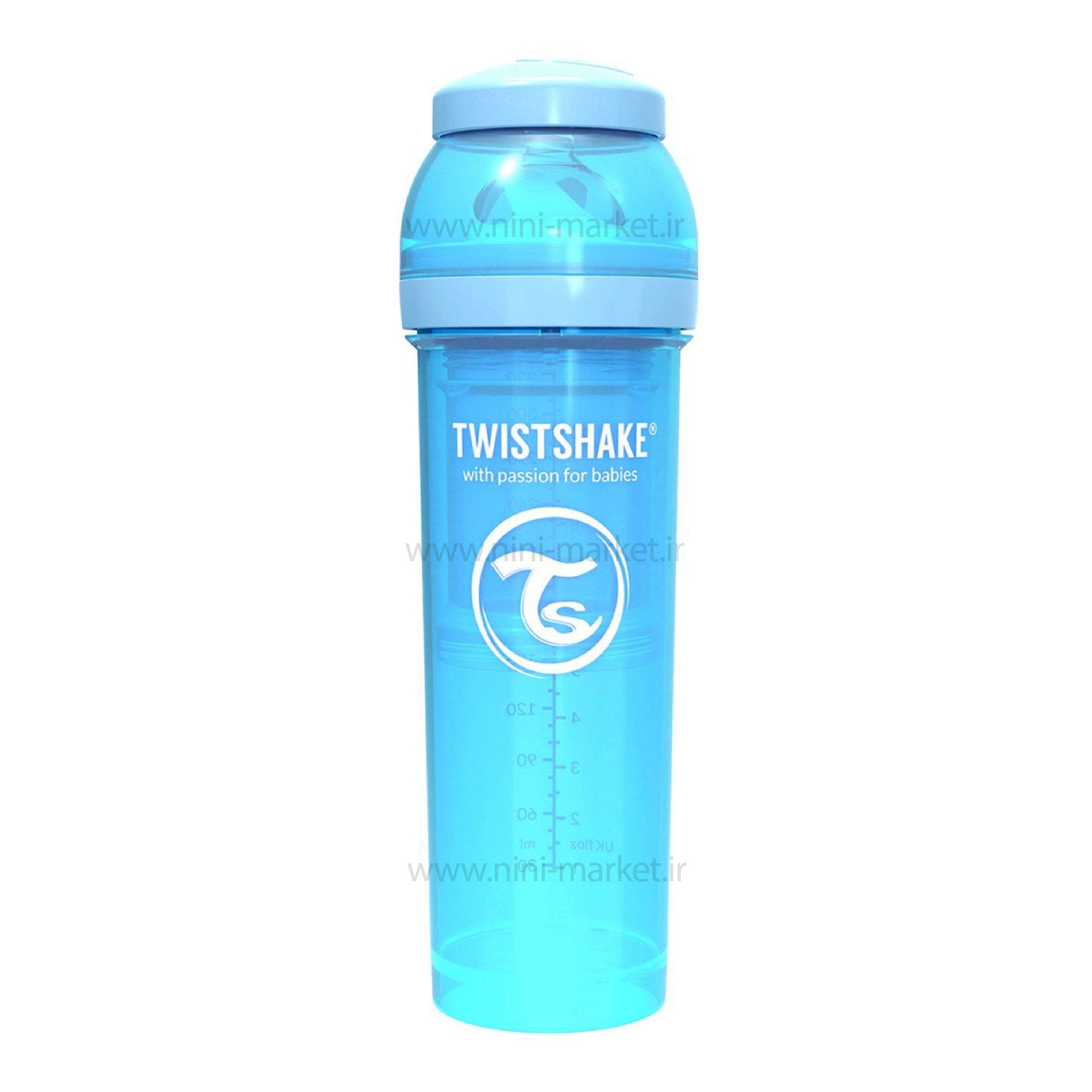 شیشه شیر طلقی ضدنفخ 330 میل آبی تویست شیک Twistshake