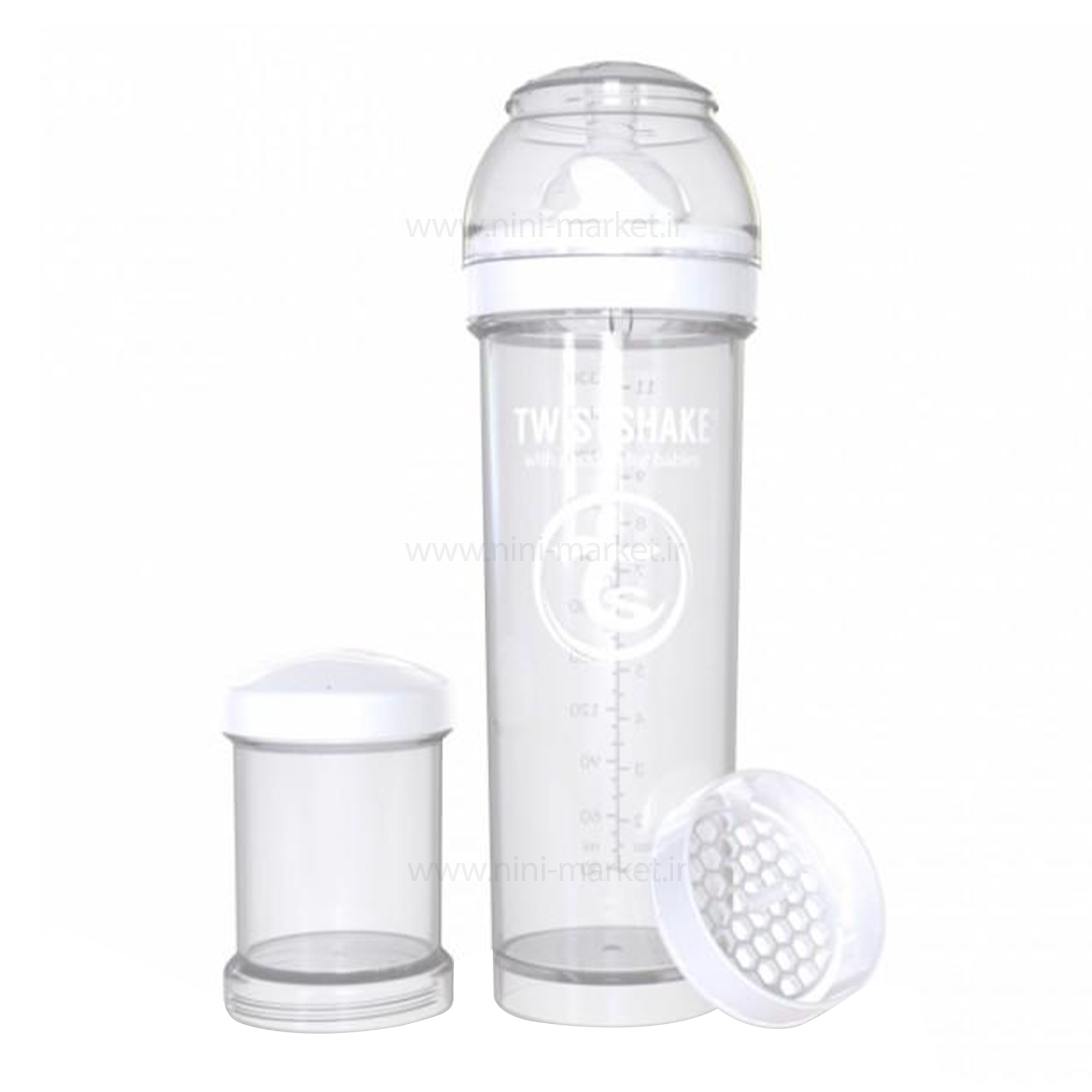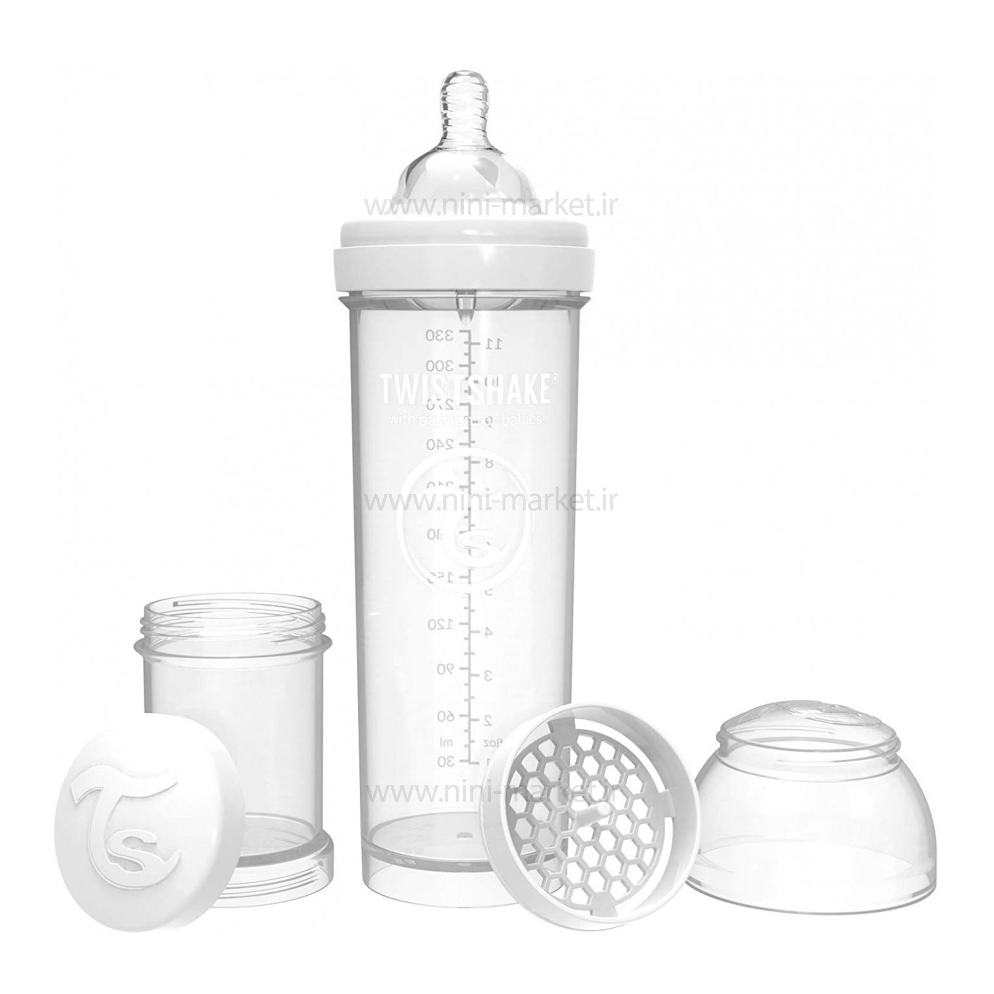شیشه شیر طلقی ضدنفخ 330 میل سفید تویست شیک Twistshake