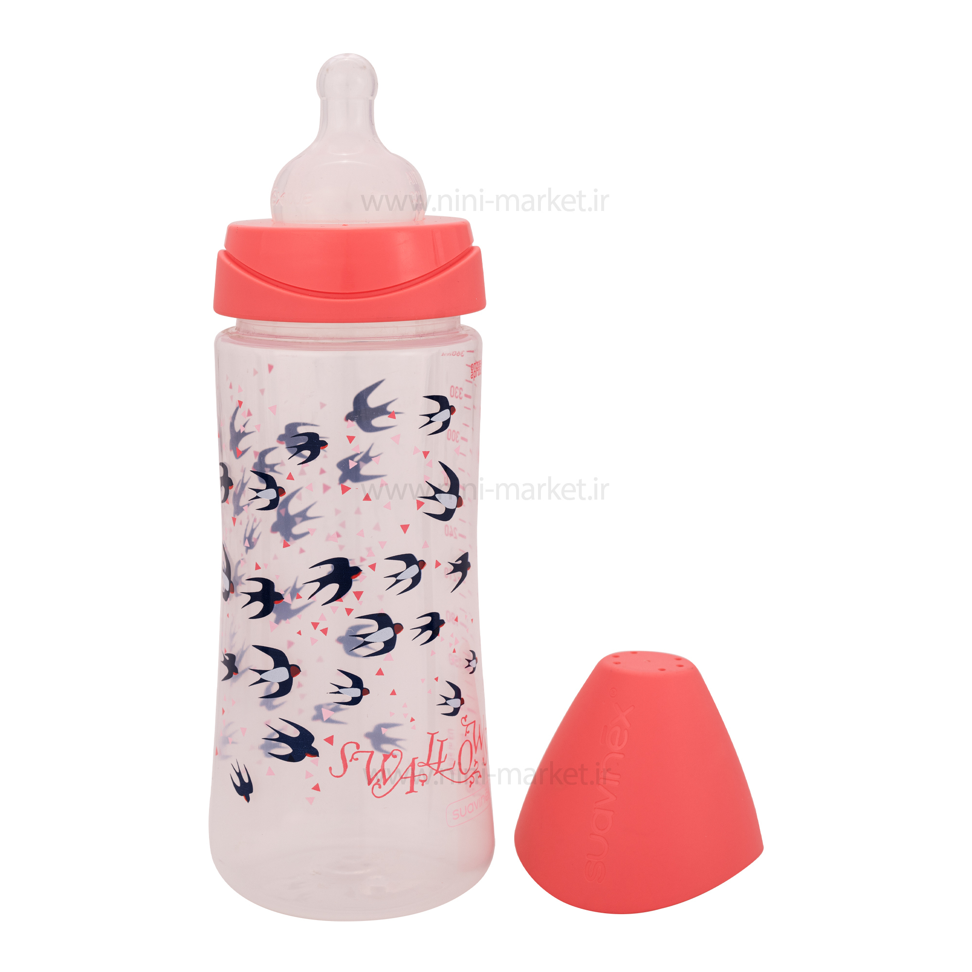 شیشه شیر ارتودنسی 360 میل سواوینکس Suavinex طرح پرستو رنگ صورتی