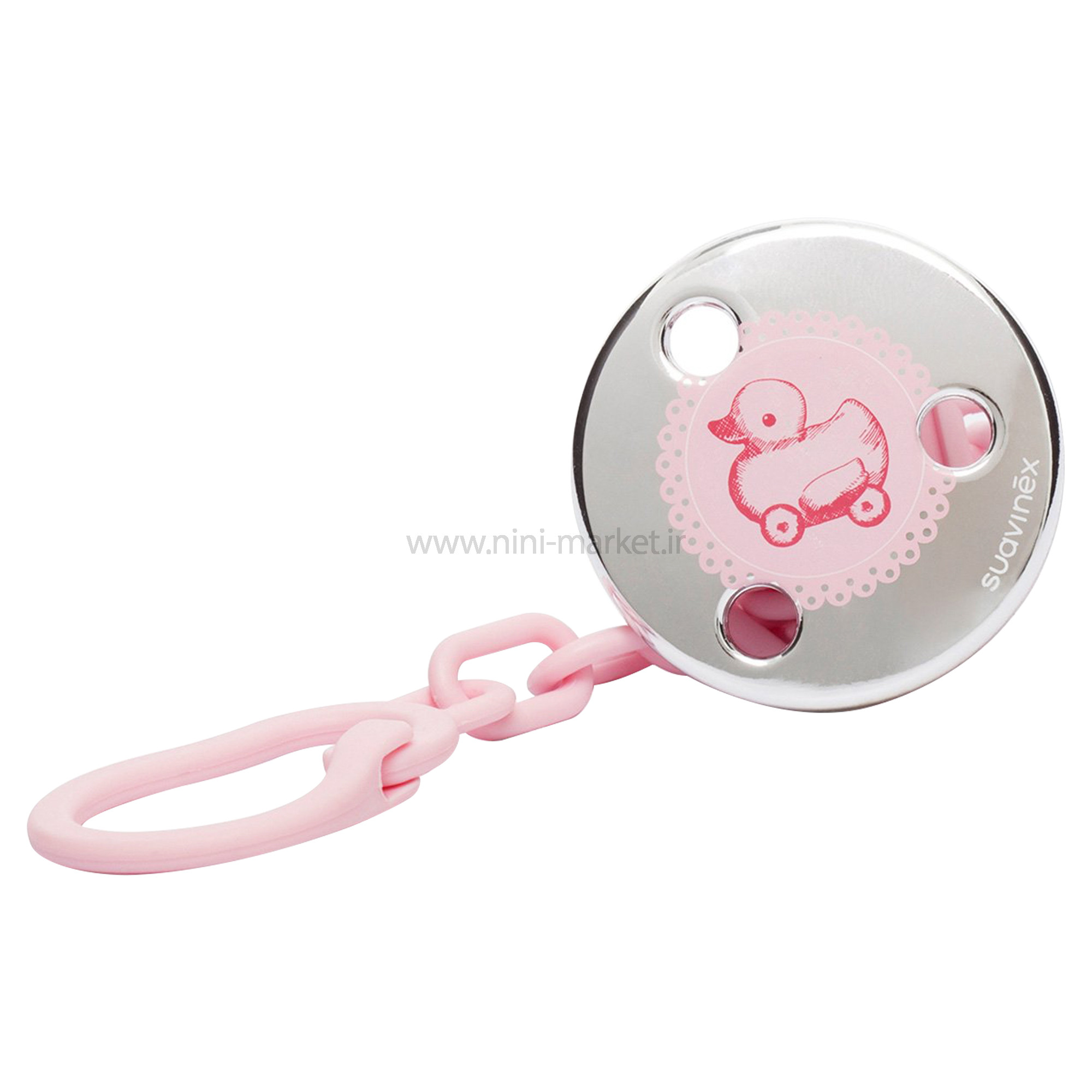 بند پستانک طرح اردک رنگ صورتی سواوینکس Suavinex