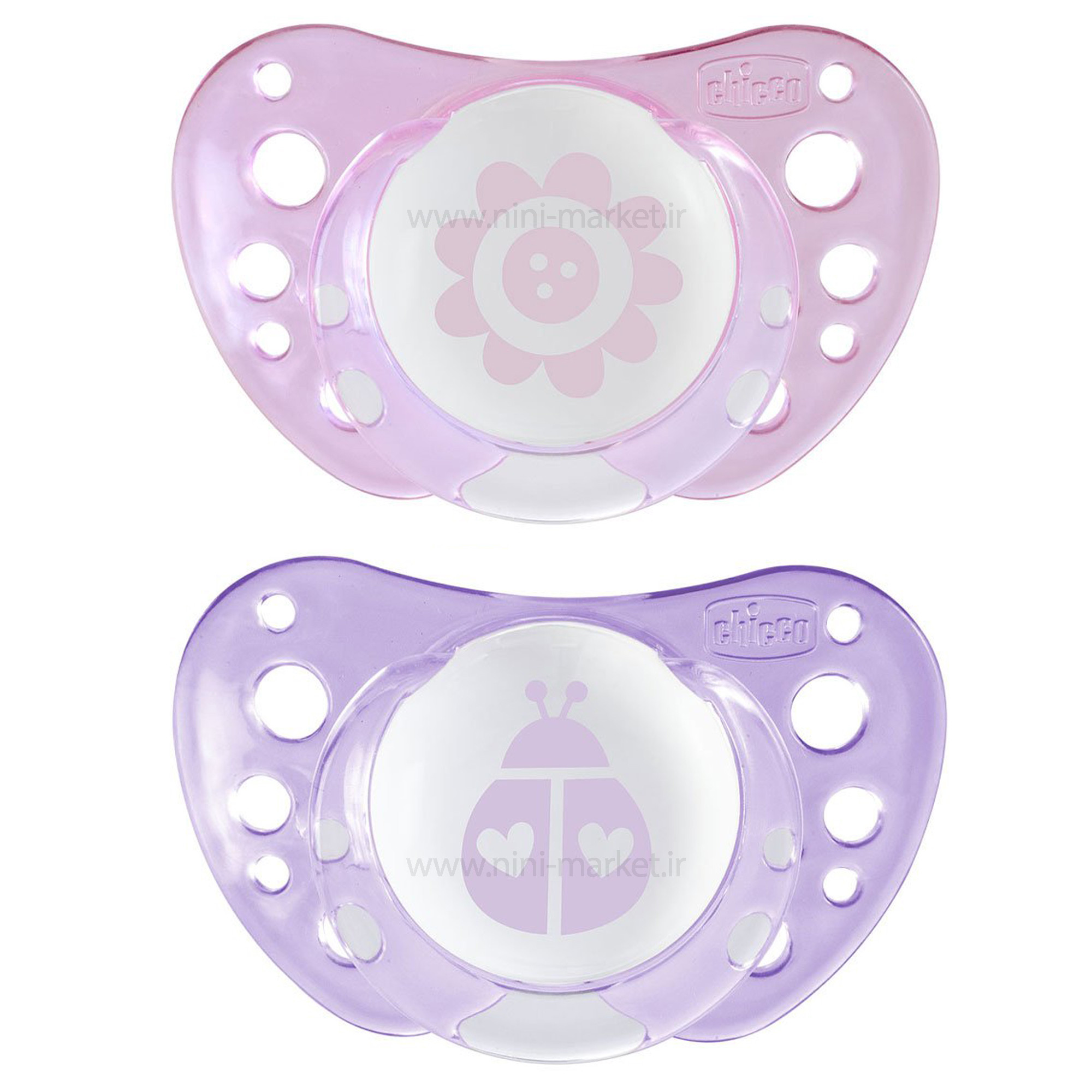 پستانک ارتودنسی دو عددی چیکو Chicco مدل PHYSIO FORMA طرح کفشدوزک و گل