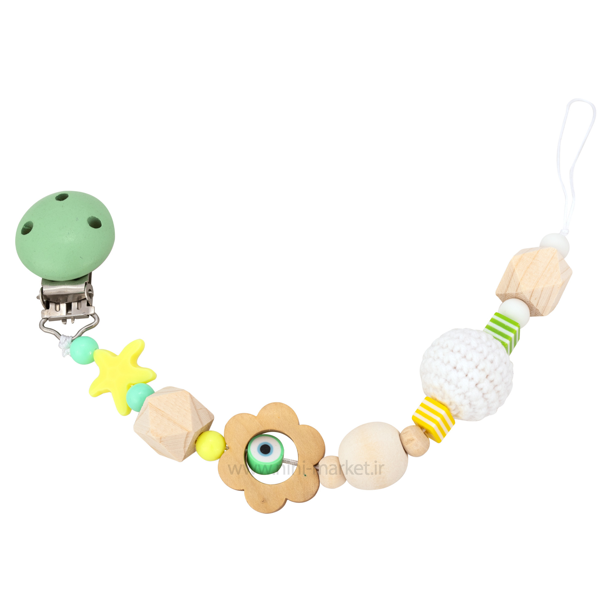 بند پستانک چوبی دکمه ای رنگ سبز ببتو Bebetto