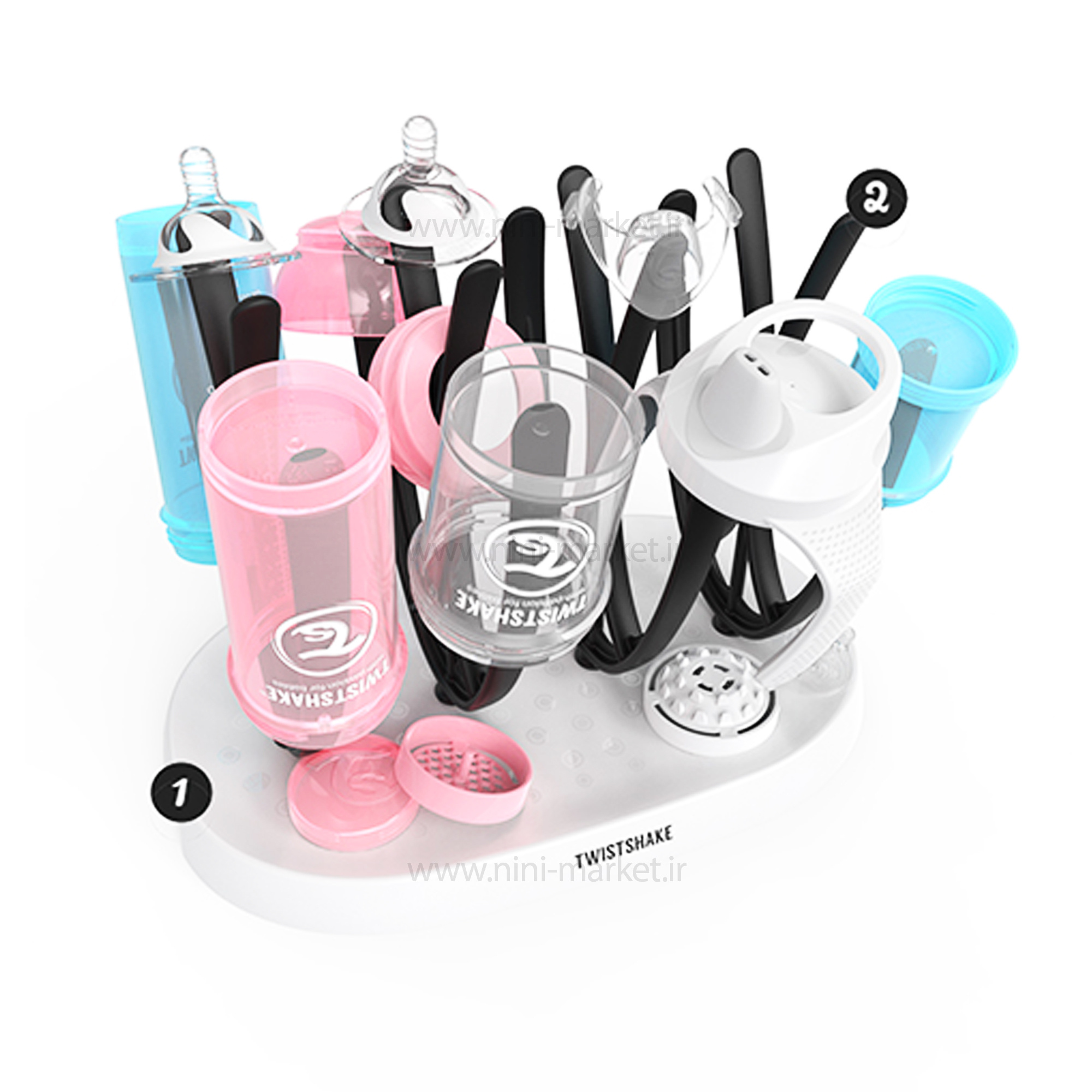 از آنجایی که سیستم ایمنی کودکان در سالها و ماه های اول زندگی ضعیف است، باید به دنبال راه هایی برای استریل کردن و نگهداری لوازم آنها باشیم. سینک و آب چکانهای خانه ممکن است آلودگیها و میکروبهای مختلفی داشته باشند از این رو قرار گرفتن شیشه شیر، شیر دوش و پستانک کودک بر روی آنها احتمال مریض شدن کودکان را افزایش می دهد .خشک کن شیشه شیر تویست شیک، یکی از راهکارهایی است که به وسیله آن می توانید لوازم کودکان را به صورت جداگانه خشک کنید. این خشک کن تویست شیک دارای ۸ بازوی نگهدارنده متحرک است. این ۸ بازو بر روی یک سطح بیضی شکل قرار گرفته اند و متحرک بودن آن این امکان را به شما می دهد تا به راحتی بتوانید شیشه شیرهایی با سایز مختلف را روی آن قرار دهید. این کف عمق مناسبی دارد و آب اضافی شیشه شیر را در خود نگه می دارد در نتیجه محیط اطرافش را تمیز نگه می دارد. از دیگر مزیتهای این خشک کن می توان به ایمن بودن آن اشاره کرد. این محصول فاقد BPS-PBA-BPF است از این رو برای شما و کودک دلبندتان مناسب است.