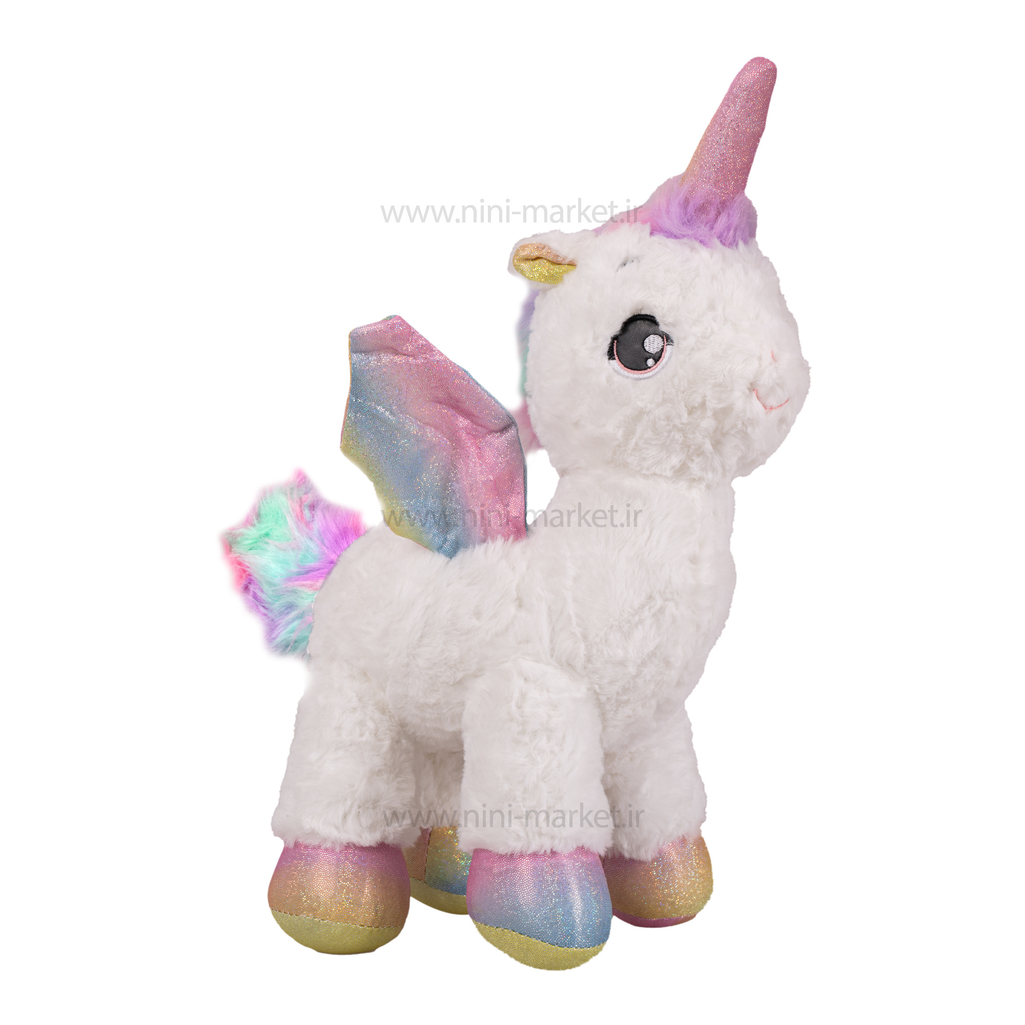 عروسک زیبا و دوست داشتنی تک شاخ یا همان یونیکورن در رنگ سفید که این شخصیت کارتونی در بین کودکان بسیار پر طرفدار است. عروسک اسب تک شاخ به دلیل نداشتن بافت های تیز و خطرناک و جداشونده برای تمامی رده های سنی مناسب است این تکشاخ زیبا برای زیبایی در کنار تخت و کمد بسیار مناسب است. کودکان می توانند با آن بازی کنند و در خیال خود بازی های کودکانه کنند. دست ، پا شاخ و بالهای آن از پارچه هفت رنگ اکلیکی کارشده که زیبایی آن را چند برابر کرده است . در بال های این عروسک یک نوع مفتول کار شده که به راحتی حالت میگیرد که هر فرم دلخواهی که بخواهید میتوانید در بیاورید.چشم، ابرو، بینی و دهان به صورت تکه دوزی و گلدوزی درآمده است که ظرافت و زیبایی خاصی به این عروسک بخشیده است . یک هدیه مناسب برای کودکان دلبندتان است .