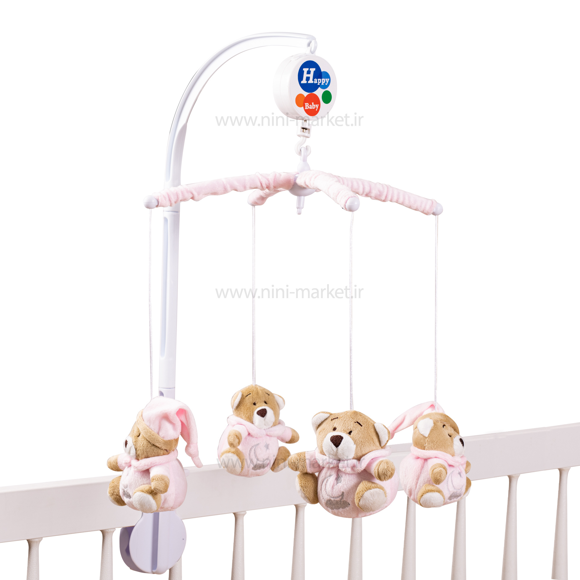 آویز تخت موزیکال طرح خرس رنگ کرم-صورتی سانوزی Sunnozy