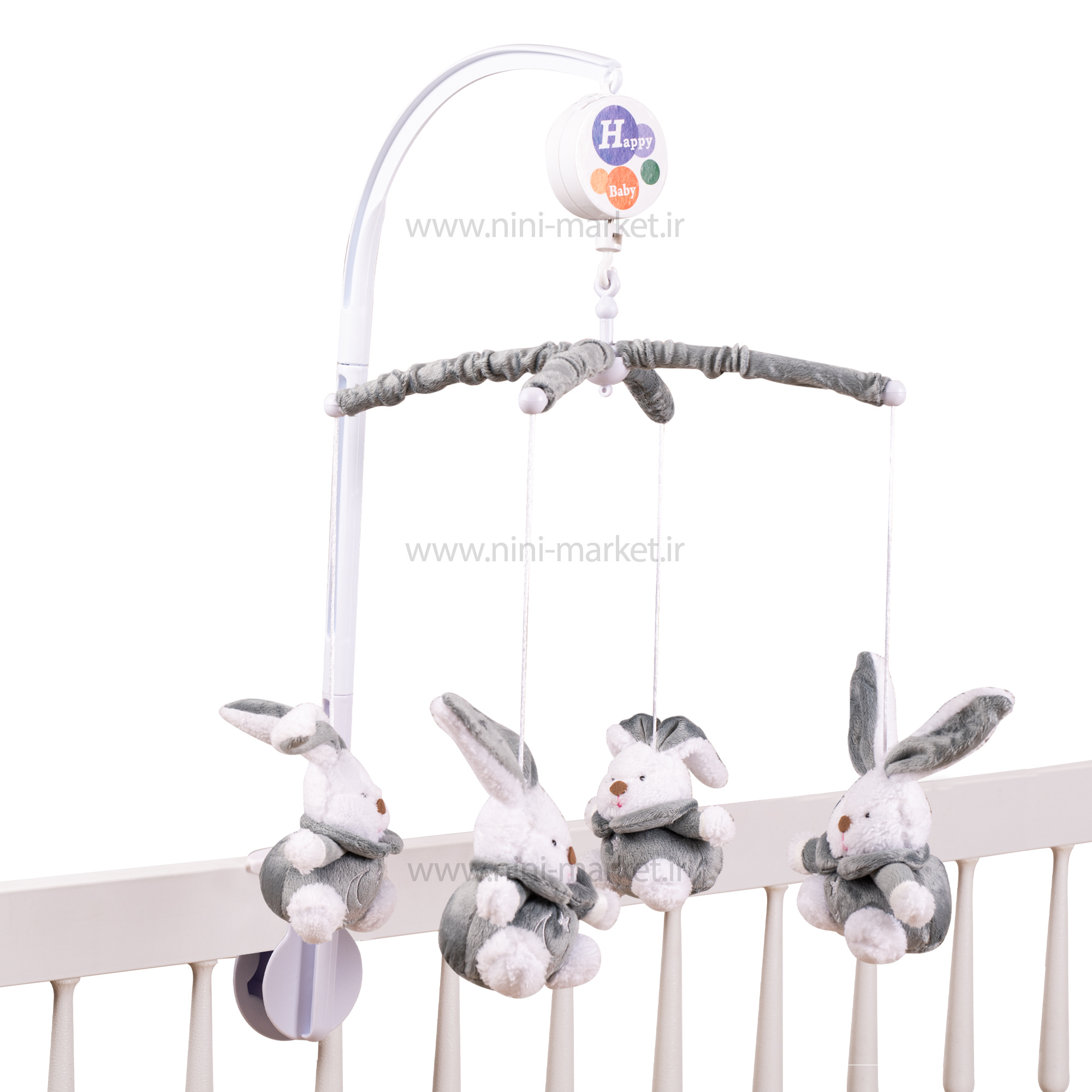 آویز تخت موزیکال طرح خرگوش رنگ طوسی سانوزی Sunnozy