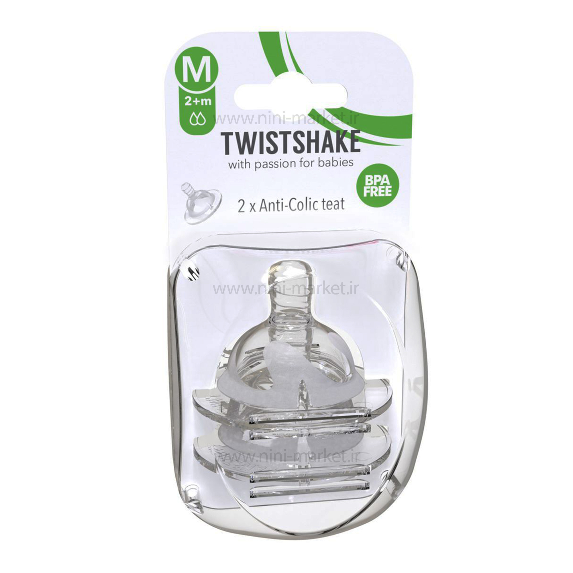 سرشیشه تویست شیک(+2 ماه) سرشیشه سیلیکونی توییست شیک مشابه سینه مادر و ارتجاعی میباشد و حس مکیدن از سینه مادر را به نوزاد انتقال می دهد. سرشیشه ضد نفخ و آنتی کولیک تویست شیک از ایجاد دل درد و ورود هوا به شکم کودک جلوگیری می کند. شیشه شیر تویست شیک از جنس مواد نرم و سیلیکونی هست طراحی سرشیشه ای تویست شیک شباهت بسیار بالایی به فرم طبیعی سینهی مادر دارد، دارا بودن این ویژگی سبب می شود تا شیر خوراندن به کودک کاملا بدون خطر و به نرمی صورت گیرد و در صورت تغذیه همزمان هم از شیر مادر هم شیشه شیر نوزاد از تغذیه سینه مادر امتناع نکند. جریان شیر در این سرشیشه به صورت متوسط است .