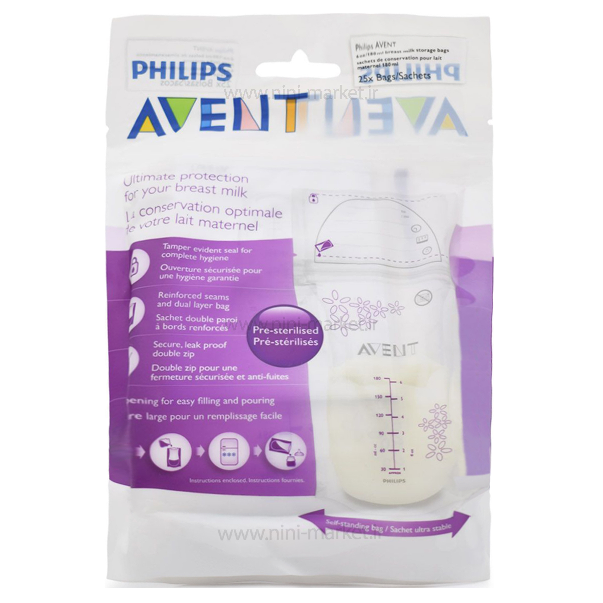 کیسه ذخیره شیر فیلیپس اونت Avent بسته 25 عددی