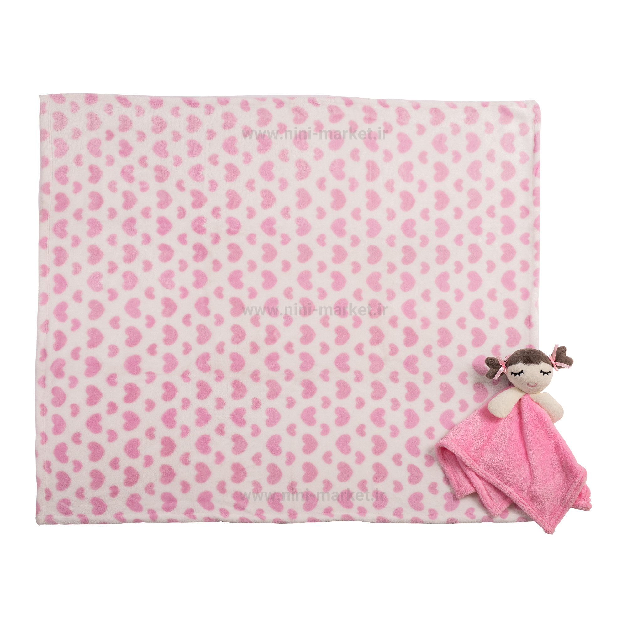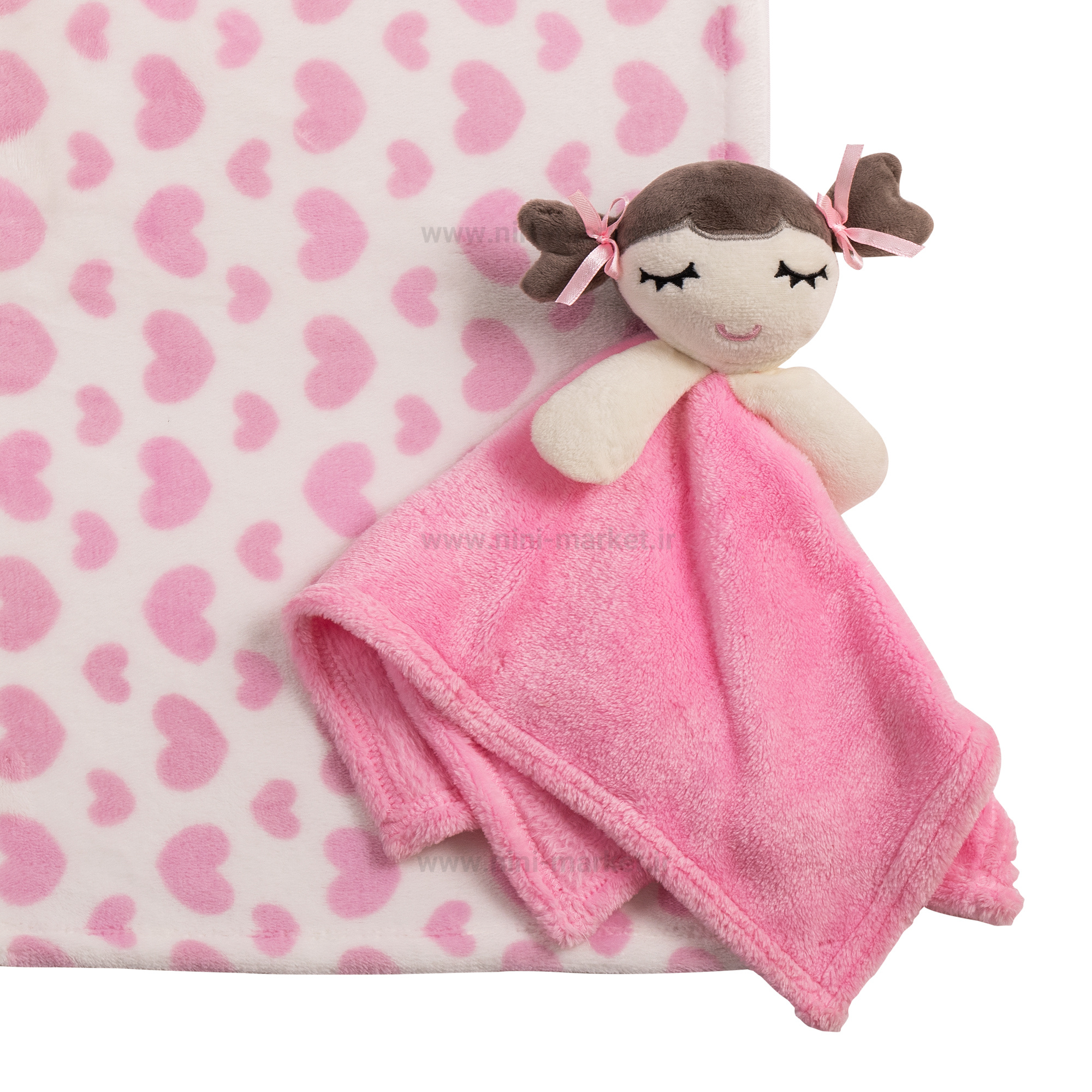 پتو عروسکی نوزاد طرح دختر و قلب رنگ صورتی My Little Love